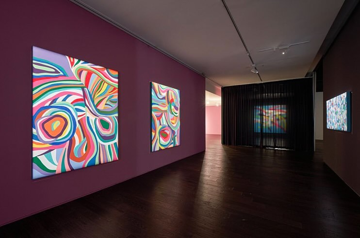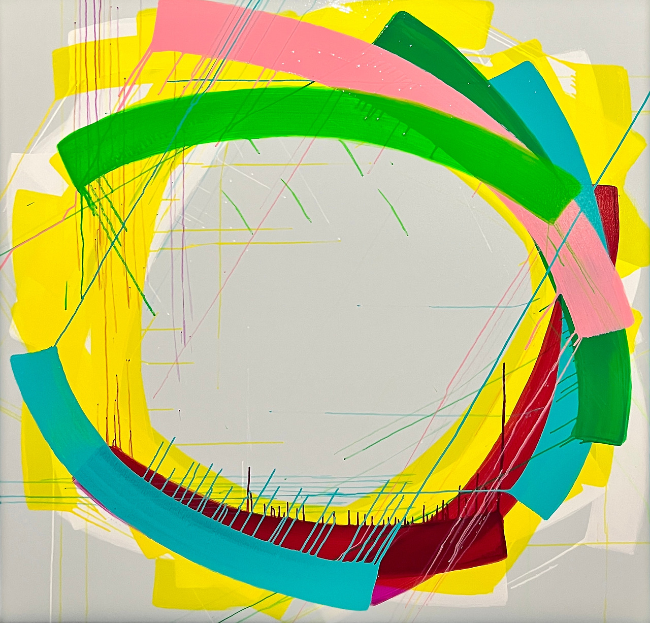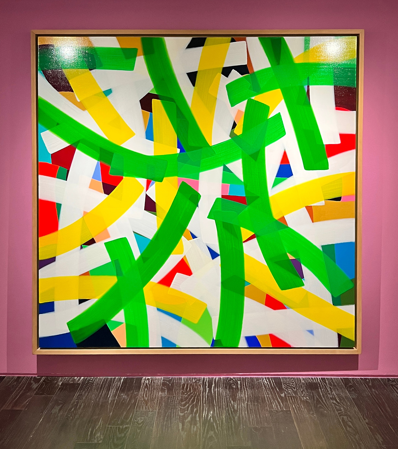 색띠들의 궤적이 흥미롭습니다. 그림을 제작하는 영상을 보니 저 붓터치 하나를 한 번에 휙 하고 그리던데 그 리듬을 연상하며 작품을 바로 보니 흥미롭게 느껴집니다.