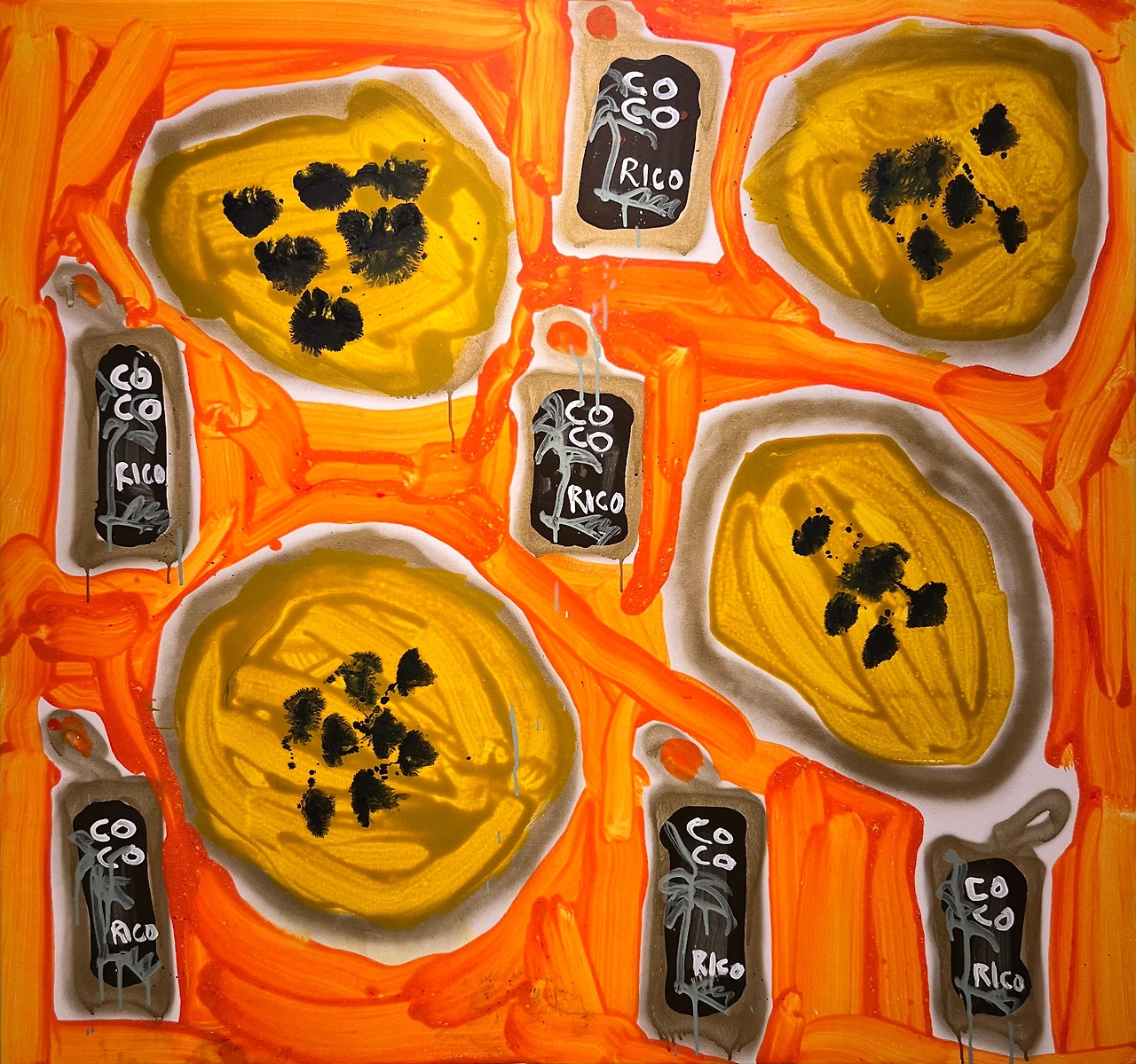 Tostones + Coco Rico, 2015, 121.9 x 121.9 cm, Acrylic and spray paint on canvas