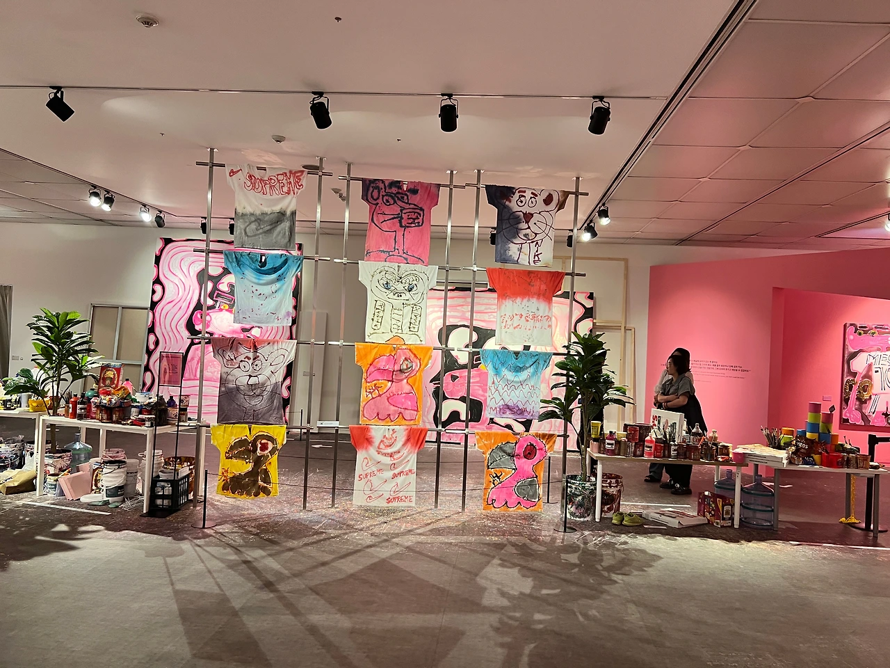 스튜디오 재현에 사용된 물감통, 스프레이, 붓과 같은 작업도구들과 신발, 양말, 과자 및 기타 오브제들 그리고 실제 작품인 티셔츠와 피자 작품은 모두 미국 미주리주 세인트루이스에 위치한 캐서린 번하드의 작업실에서 직접 가져온 실제 물품 및 작품이라고 합니다.