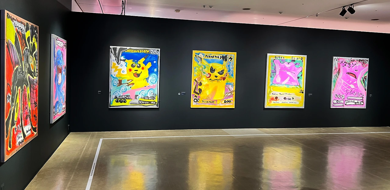 Surfing Pikachu, 2023, 152.4 x 121.9 cm, Acrylie and spray paint on canvas