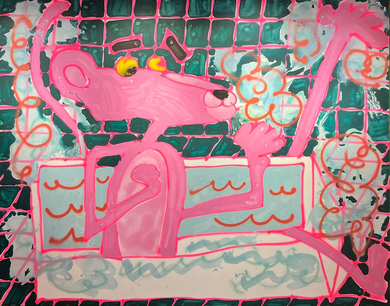 Tub Time, 2023, 243.8 x 304.8 cm, Acrylic and spray paint on canvas