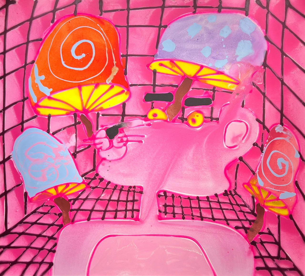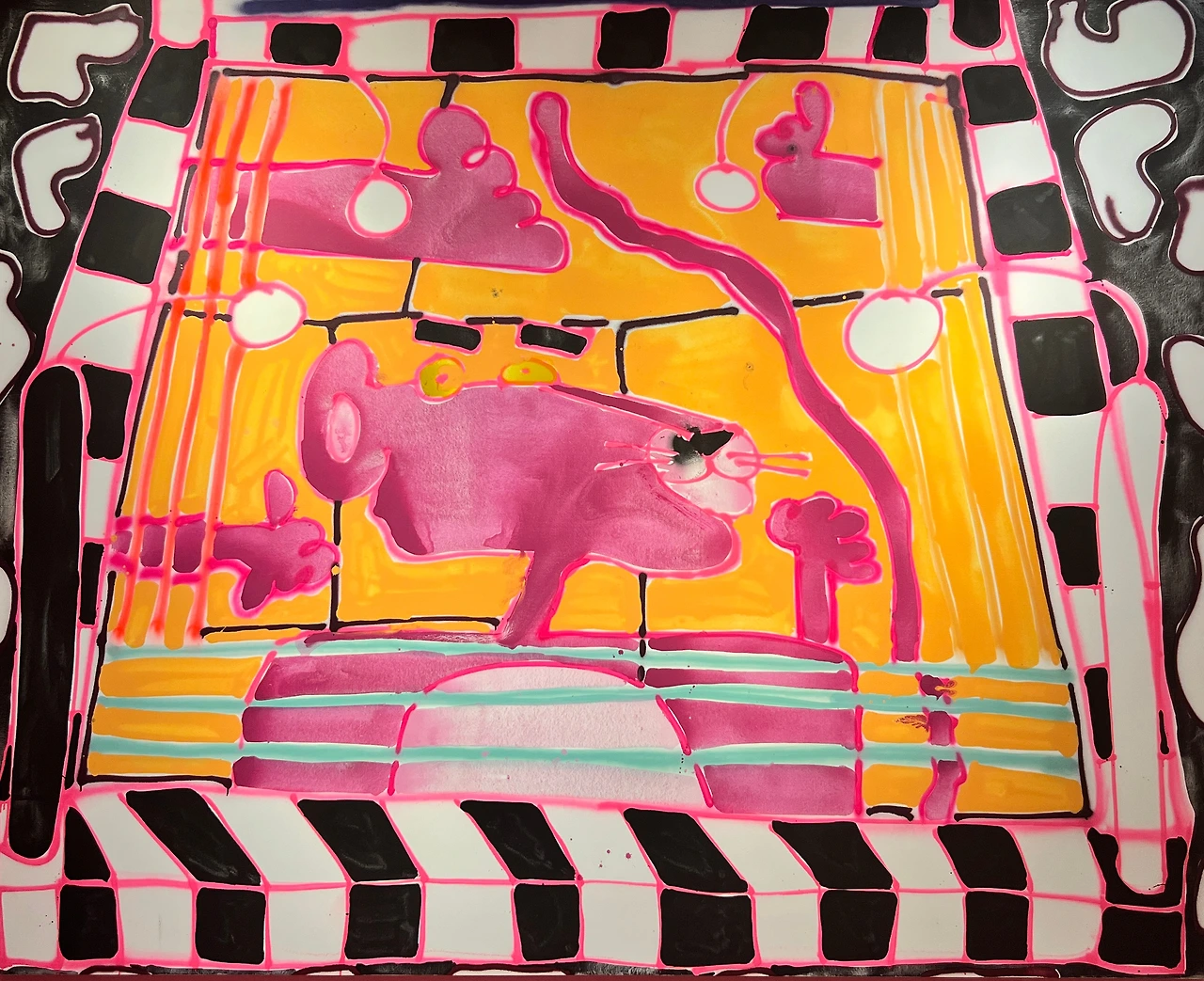 Indeedee, 2021, 152.4 × 121.9 cm, Acrylie and spray paint on canvas