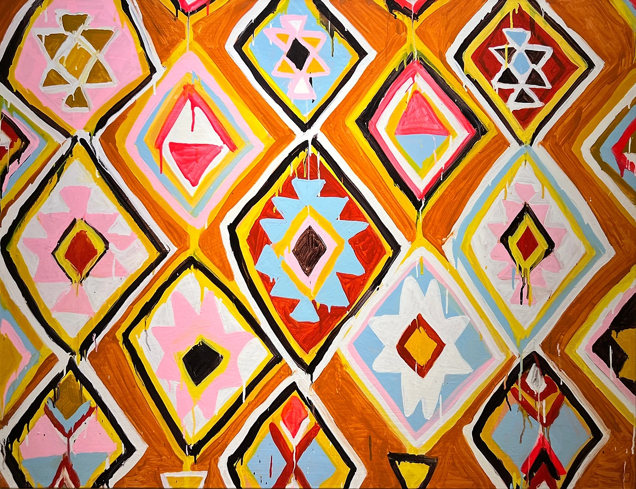 손으로 짜인 거친 기하무늬와 강렬한 색감의 리듬은 회화의 형식과 구조에 대한 새로운 가능성을 열어주었고, 번하드는 그 안에서 '패턴'이라는 회화적 언어를 본격적으로 인식하게 된다. 그녀의 그림은 점차 인물 중심의 구도에서 패턴과 배열 중심으로 이동하여 갔고, 이는 이후 작업의 중요한 축이 되었다.