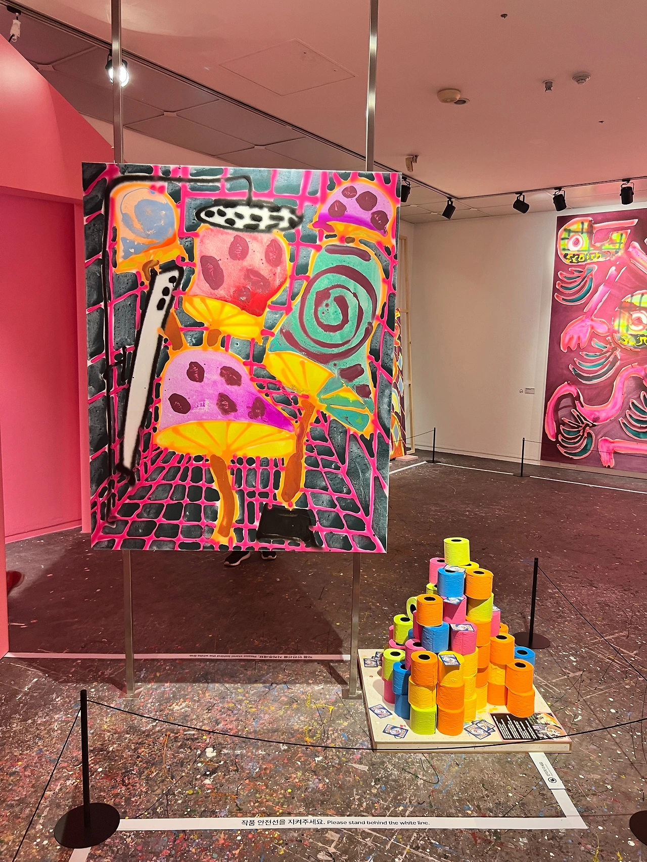 벽면에 패턴 핑크 라인도 작가의 붓터치를 재현했다고 합니다.