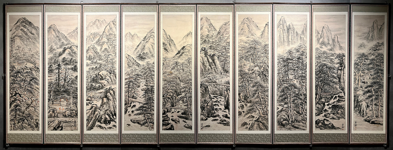 정종여, (가야산하), 1941, 종이에 먹, 색; 10폭 병풍, 157x33.5cm(x10) 국립현대미술관