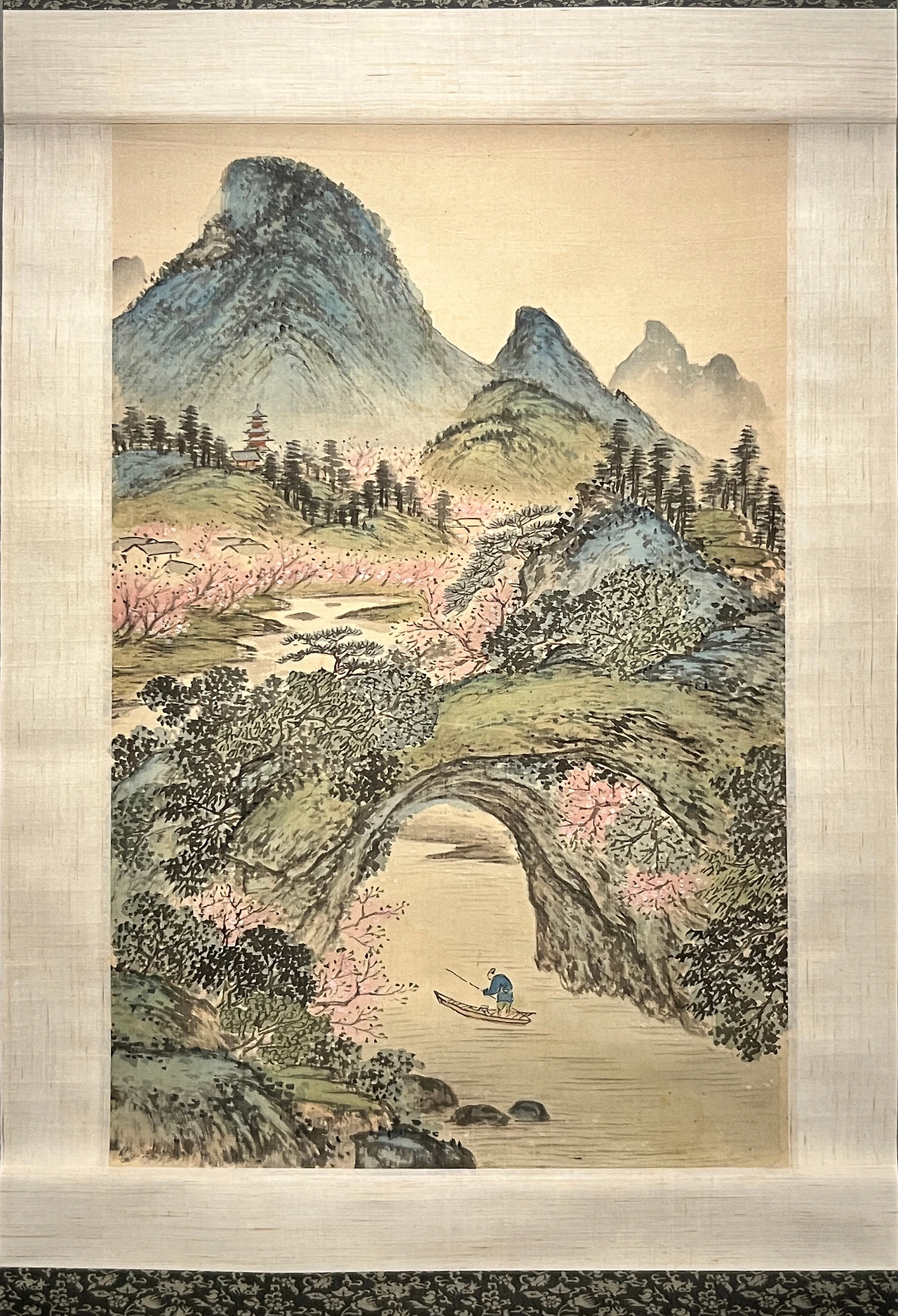 일본 고무로 스이운(/호로) 문하에서 화업을 익혔으며, 1930년대 광주 무등산에 정착해 남종화의 부흥과 인재 양성에 힘썼다. 《석문도명〉은 중국 시인 도연명의 「도화원기』를 주제로 한 그럼으로, 이상향 풍경이 허백련 특유의 질박한 필묵과 갈청색조 담채로 돋보인다.
