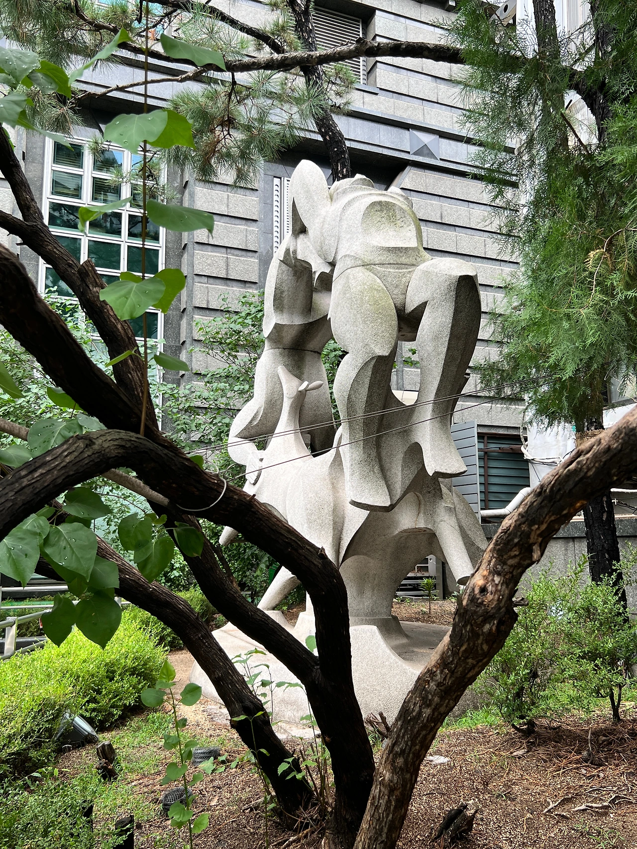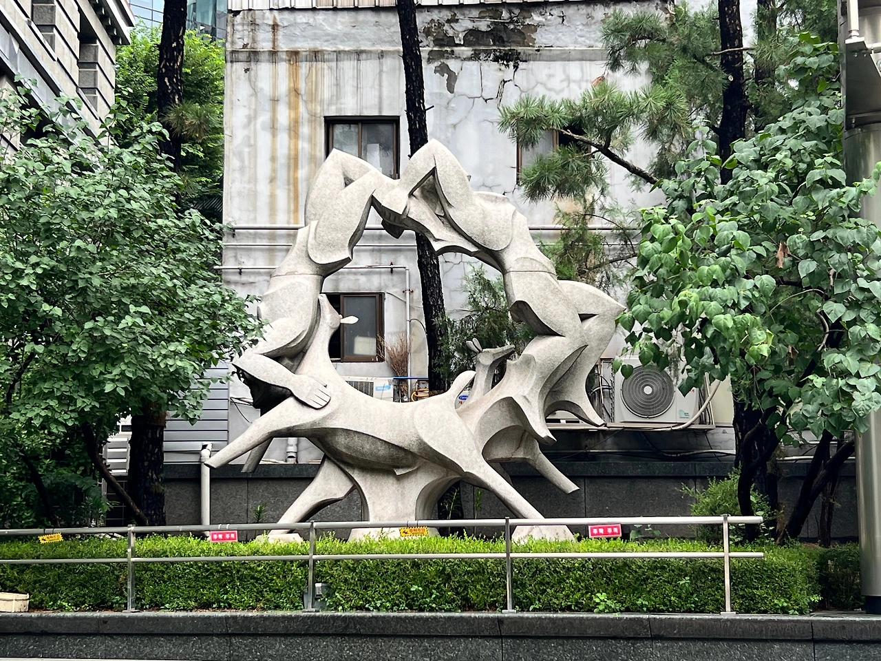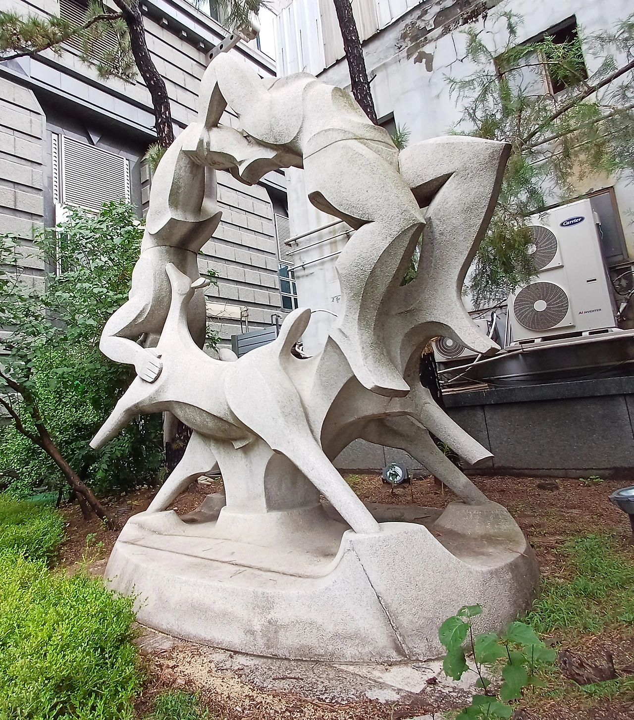 시청역 길을 가다 언뜻 보이는 작품에 눈길이 갔는데 정원 중앙에 배치되어 있어서 근처에 다가가지 못하는 게 아쉬웠습니다. 다만 멀리서 봤을 때 작품이 잔디에서 도드라지듯 잘 보여서 나름 매력이 있습니다.