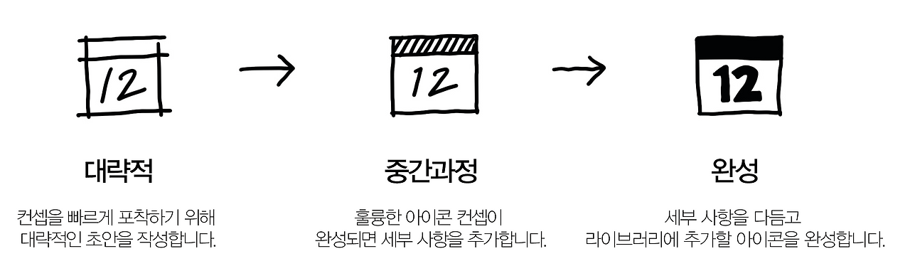 아이콘은 작게 사용하는 것이 목적이다 보니 사물의 핵심 포인트를 잘 살리지 않으면 표현하기 어렵습니다.