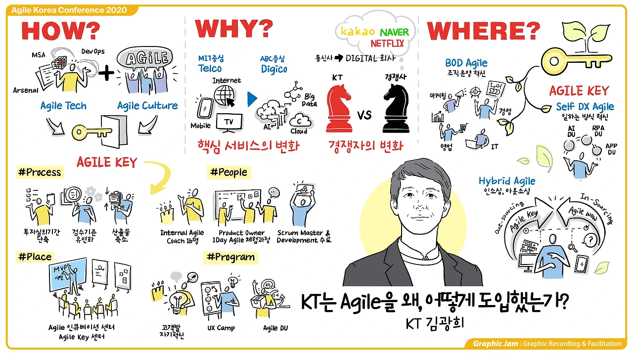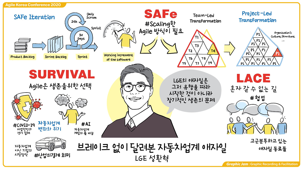 그래픽 레코딩은 마치 마법 같습니다. 복잡한 이야기를 한눈에 보이게 정리해 주는 시각적인 마법!