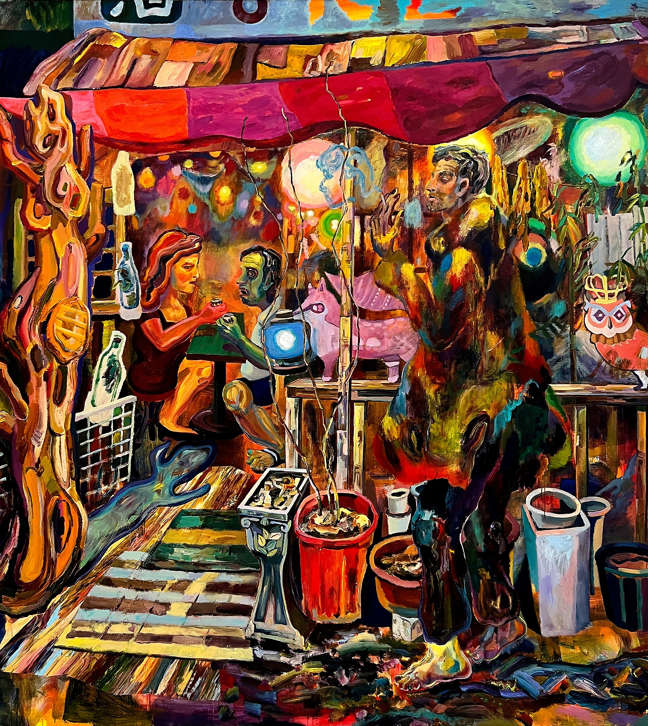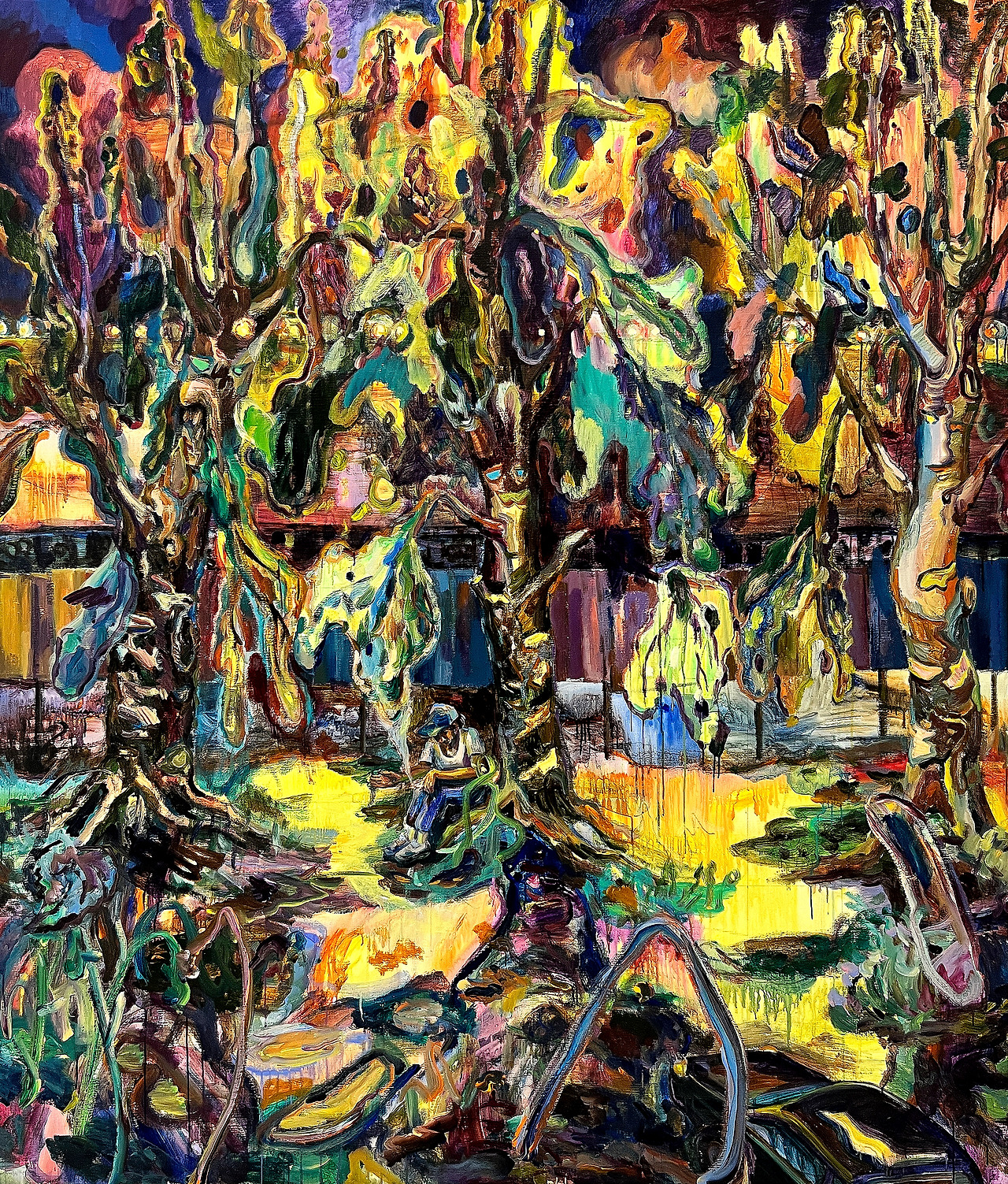 나무와 혜우와 나, 2023-2024 리넨에 유채, 228 x 195 cm