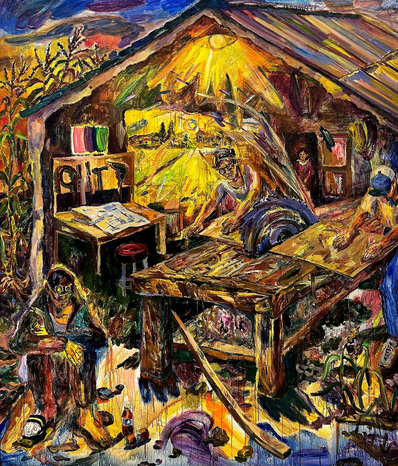 목수의 시간, 2022 리넨에 아크릴릭, 228 x 195 cm