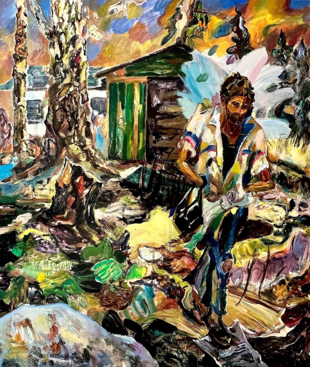 폐허에 사는 남자_메르겐탈러링 작은 정원구역, 흐림, 2022, 리넨에 아크릴릭, 228 x 195 cm