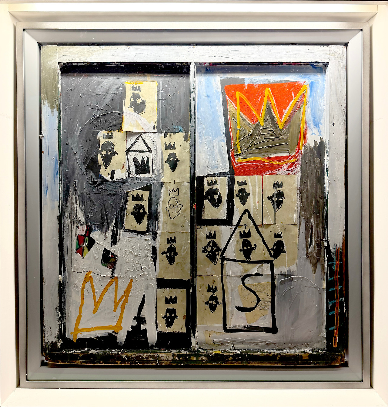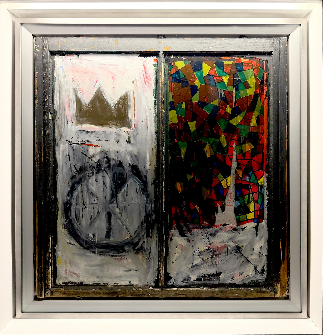 무제 Untitled, 1982, Oil, spray-paint, oilstick and collage on found window, two-sided, 94.5 ×88 ×4.5cm, Private Collection