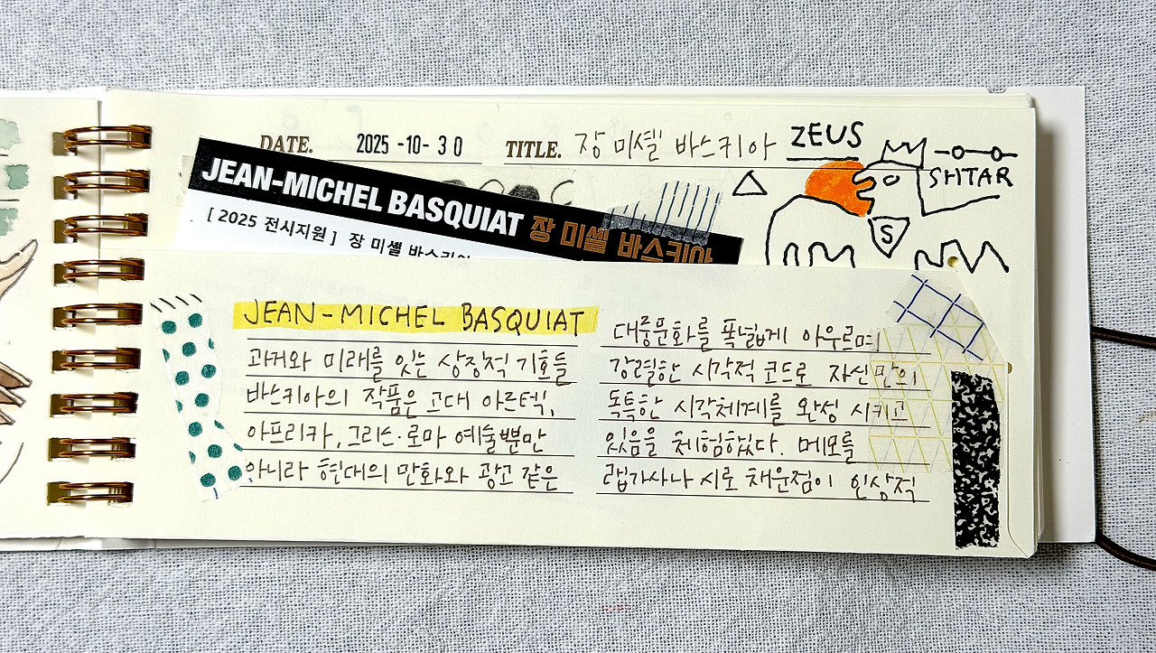 바스키아는 음악, 해부학, 스포츠, 만화, 자본, 인종의 역사 등 다양한 주제를 작품 속 상징과 시각적 언어로 전환하였다. 반복적으로 등장하는 왕관, 해골, 해부학 도해 등은 단순한 장식적 요소가 아니라 문명의 상처와 사회적 경험을 드러내는 근본적인 상징이며, 언어 이전의 질서를 환기하는 원초적 기호로 작동한다. 특히 그가 남긴 아티스트 북은 낙서가 아니라 언어와 이미지가 교차하는 실험의 공간이었다 파편과 반복 지워짐과 겹침 속에서 기호가 리듬과 감각으로 전환되는 과정을 보여준다.