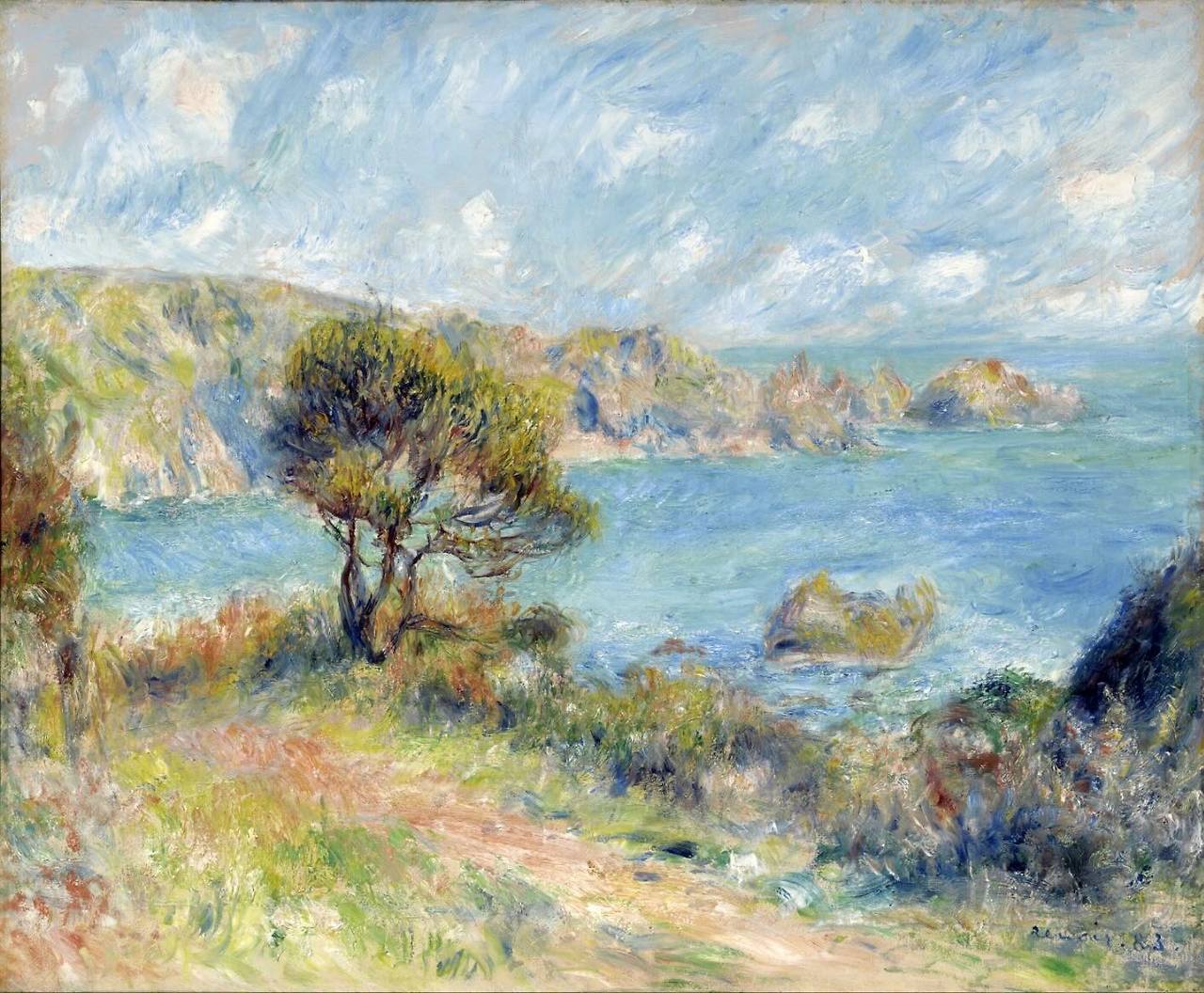 '1883년, 한 달 넘게 이 섬에 머물렀던 '르누아르'는 바다와 절벽, 해변에 비치는 빛과 그림자에 정말 매료되었고, 섬의 매혹적인 분위기에서 많은 영감을 얻었습니다. 그리고 이 섬을 다녀간 이후 그의 작품 스타일에도 많은 변화가 있었답니다. 최근 건지섬에는 140년 전 르누아르의 발자취를 따라가며 그림 그렸던 장소를 돌아보는 투어 패키지, '르누아르 산책 The Renoir Walk' 프로그램도 운영되고 있답니다.