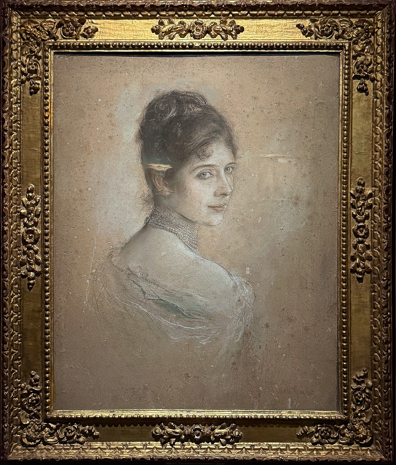 조반니 볼디니는 이탈리아의 장르이자 초상화 화가다. 본 드로잉은 그의 특유의 빠른 선묘와 섬세한 관찰력이 돋보이는 작품으로, 친구의 부름에 고개를 살짝 돌리는 듯한 젊은 여성의 모습을 연필로 표현하고 있다.