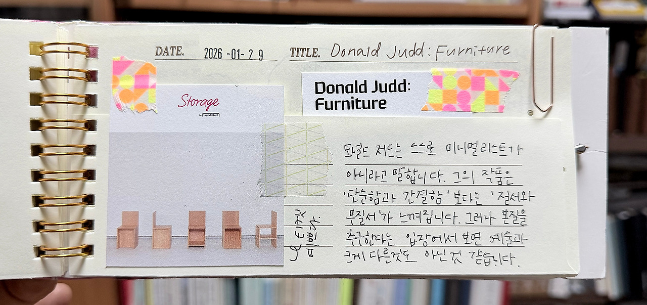 현대카드 Storage는 20세기를 대표하는 가장 중요한 작가 중 한 명으로 평가받는 도널드 저드(Donald Judd, 1928-1994)의 국내 최초 가구 전시 <Donald Judd: Furniture>를 개최한다. 이번 전시는 저드가 디자인한 가구를 비롯해 판화 및 드로잉 작품을 선보인다. 단순한 형태와 반복, 색채와 재료의 물성을 탐구하며 예술•건축• 디자인의 경계를 넘나든 그의 급진적인 예술 실천을 조명한다. 현대카드는 저드의 미니멀 철학에 주목하며 2020년 뉴욕현대미술관(MOMA)에서 열린 그의 대규모 회고전 <Judd> 후원을 시작으로, 저드 재단(Judd Foundation)과의 긴밀한 파트너십을 통해 본 전시를 개최하게 되었다.