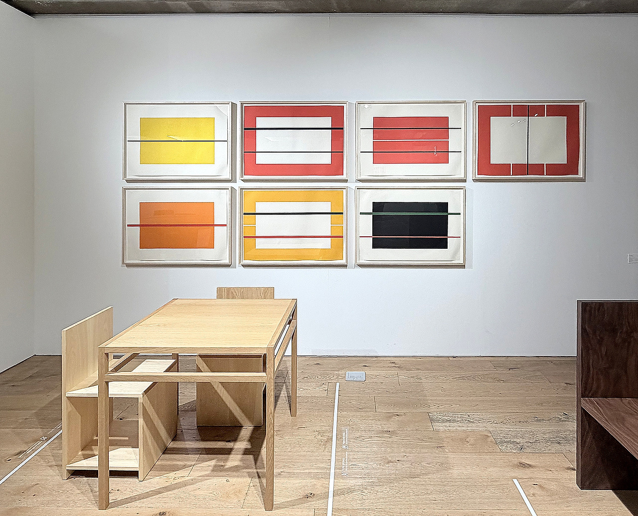실크스크린과 목판화 기법으로 제작된 1970~1990년대 판화는 회화와 입체 작품에서 다루던 형태와 색채에 대한 작가의 지속적인 관심을 보여준다. 저드는 40여 년 동안 수백 점의 판화를 제작했으며, 이는 그가 판화를 회화나 조각만큼이나 진지한 예술 형식으로 간주했음을 시사한다. 이번 전시에 소개되는 1980~1990년대의 드로잉은 가구에 사용된 다양한 재료의 개념과 용도를 보여주며, 일부는 이번 전시에 출품된 가구와 직접적으로 연결된다. 저드에게 드로잉은 사고의 방법이자 가능성을 탐구하는 과정이었으며, 작품의 변형을 구상하거나 완성된 설계도를 전달하는 수단이었다. 마지막으로 전시장을 가로지르는 중앙 계단부에는 저드의 예술 세계를 아우르는 글과 인터뷰, 뉴욕과 마파에 위치한 작가의 공간에 대한 자료를 조명할 수 있는 8권의 아카이브 서적이 전시된다.