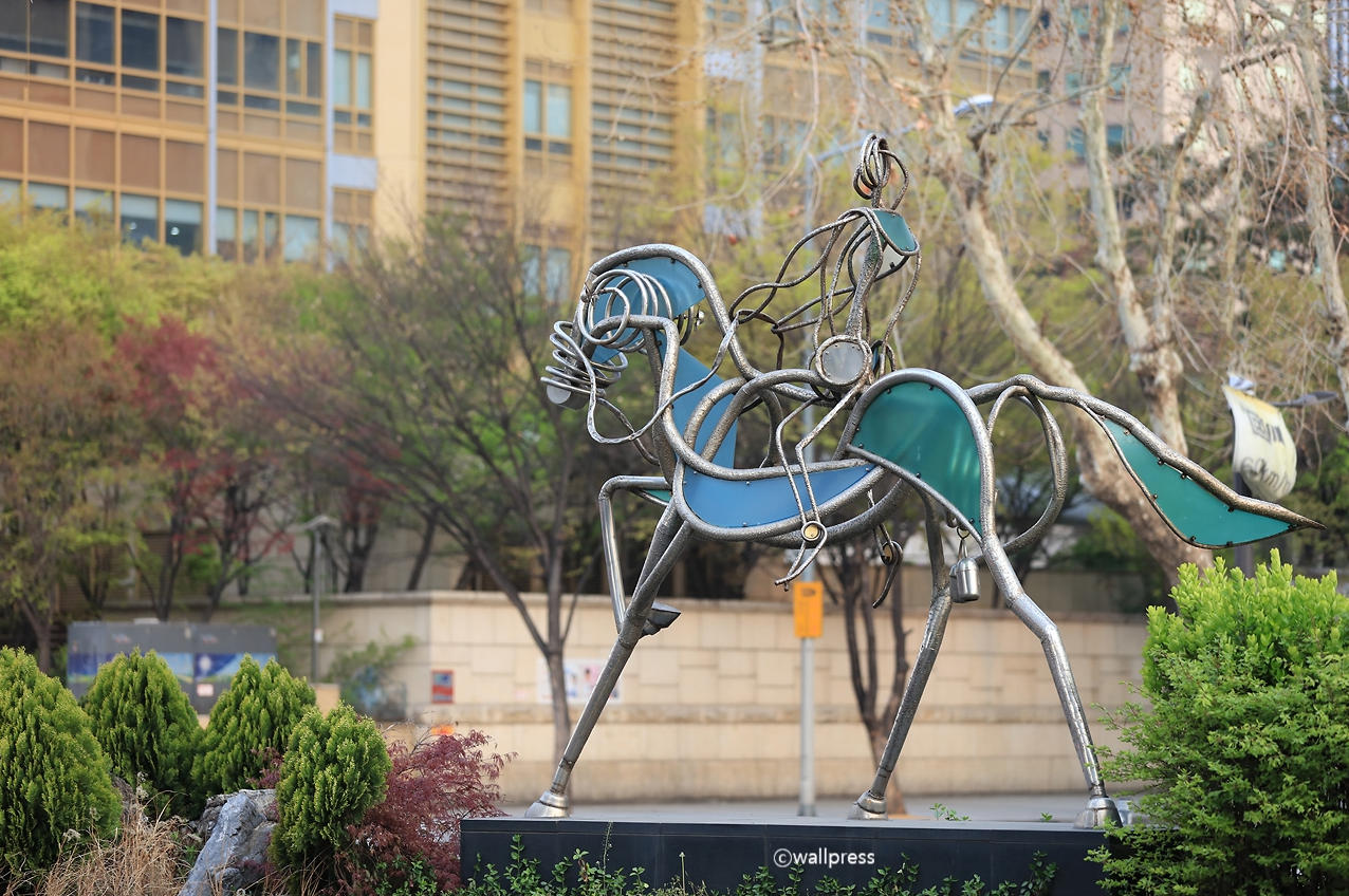 이 작품에는 잘 알려지지 않은 비밀도 있다. 말의 ‘거시기’를 방울 종으로 만든 것이다. 누군가 다가가서 손을 대면 방울종소리를 들을 수 있다. 작가는 낮고 친근하게 접근하는 수평의 마음으로 시민들이 웃음을 터뜨릴 수 있는 장치를 만들어 둔 것이다. 하지만 안타깝게도 작가의 유머 코드는 사용불가 상태다. 중앙분리대에 위치한 이 작품은 접근가능성이 거의 없기 때문이다.