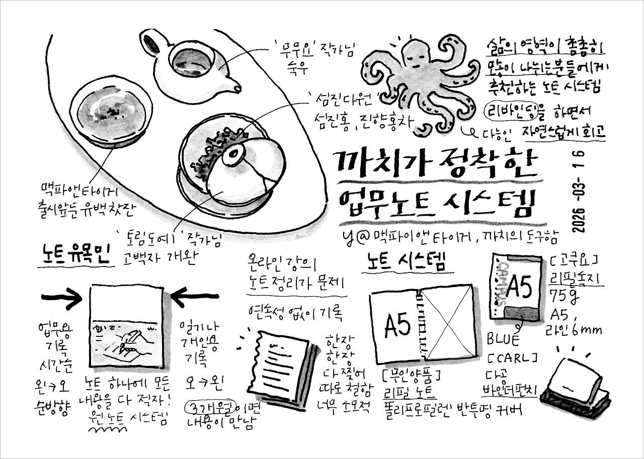 하지만 여러 가지 업무노트, 기록노트, 필사노트, 일기장, 다이어리 등 많이 써오면서도 이게 딱 내것은 아닌 것 같아 하시는 분들에게 '이런 방식도 있어요'라는 내용으로 제안을 해보는 콘텐츠입니다.