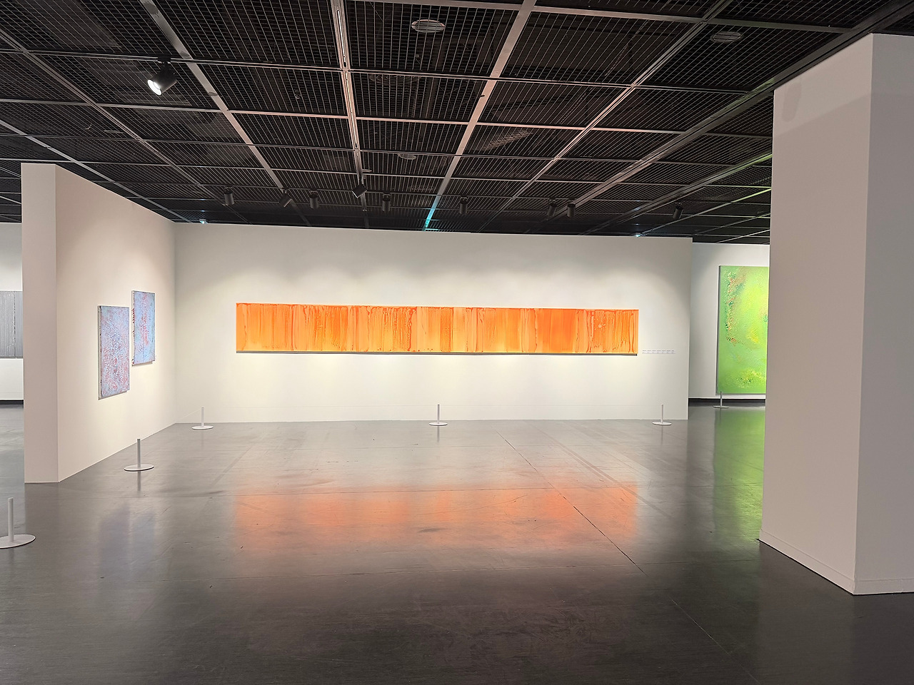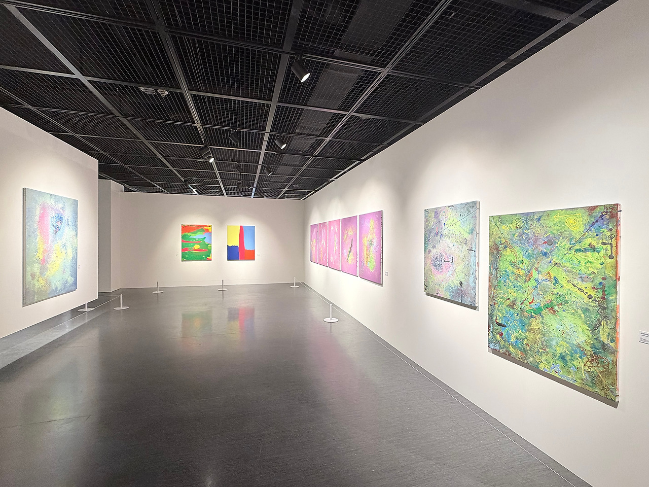 지구와 다른 시공간과 물리적 환경을 가진 다중우주인만큼 메탈릭(metallic)한 색과 액성의 물질이 중첩의 중첩을 거듭하며 유동하고 있다. 수천수만 개의 동그라미가 무한 반복하고 있는가 하면, 원통 원기둥이 회오리바람이 되어 우주터널을 만들어내고 있다. 소리의 근원을 원음으로 부르는 이유를 <소리탄생>에서 확인한다.