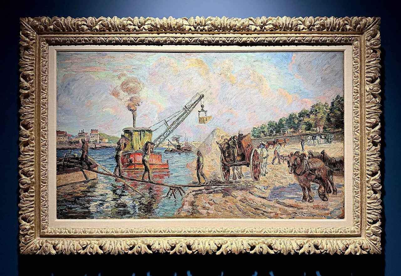 1882년작 《센 강가의 풍경》은 동료 인상주의 화가들과 구별되는 기요맹만의 '사회적 인상주의'를 보여준다. 그는 낭만적 고독이나 부르주아적 여가 대신 강가에서 화물 하역과 준설 작업에 매진하는 노동자들을 묘사했다. 이 장면은 산업화와 도시화가 진행되던 파리 외곽의 현실을 포착하여, 자연과 도시가 충돌하는 지점을 향한 화가의 관심을 드러낸다.