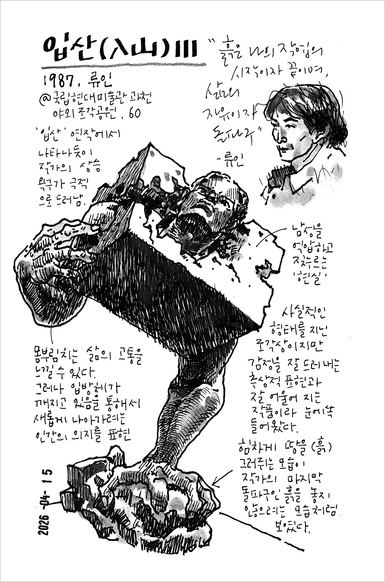 산책하는 길 중간에 만난 작품이 인상적이었습니다.
