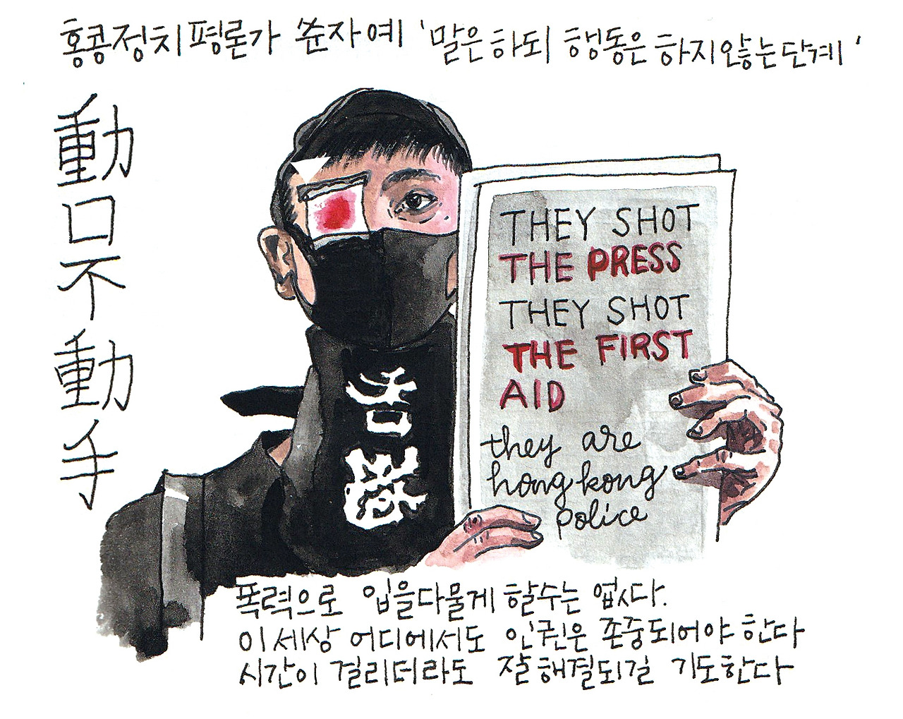 침사추이 경찰서 인근에서 시위를 벌이던 여성이 고무탄에 얼굴을 맞아 쓰러졌다. 구호대에 병원으로 이송된 이 여성은 오른쪽 안구가 파열되고 코뼈 연골이 파열돼 긴급 수술을 받았지만, 시력을 잃었다고 홍콩 명보가 보도했다. [출처: 중앙일보] 홍콩 경찰, 2m 앞 조준사격···고무탄 맞은 시위여성 실명