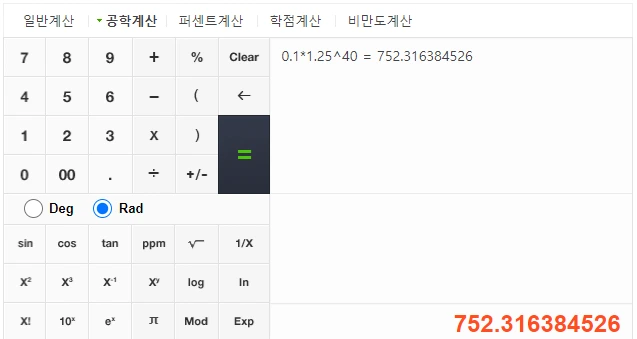 답답한 마음에 슈퍼개미라는 분의 주식 유튜브까지 보다가, 제 투자에는 아무런 목표가 없었다는 것을 알게 되었습니다. 그리고, 복리의 힘에 대해서도 알게 되었습니다. 여러분은 원금 1000만 원으로 25%의 수익을 40번 거두면 원리합계가 얼마나 될지 짐작이 되시나요? 3억? 5억? 10억? 답을 듣고도, 액수가 너무 어마어마해서 계산기로 직접 계산을 해 보았습니다.
