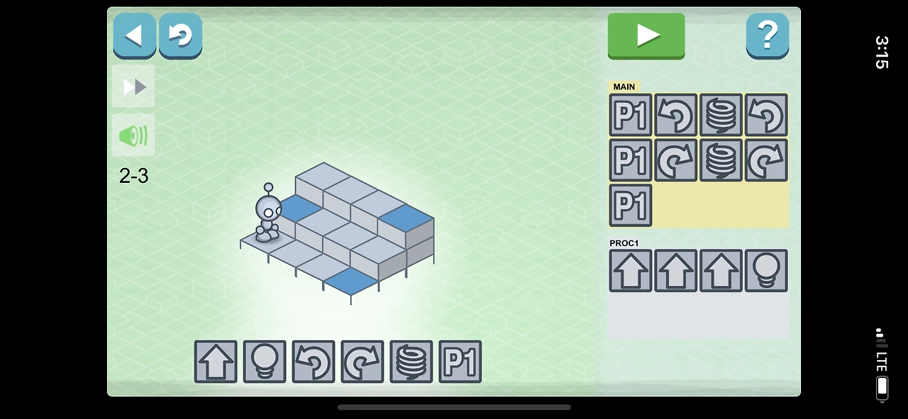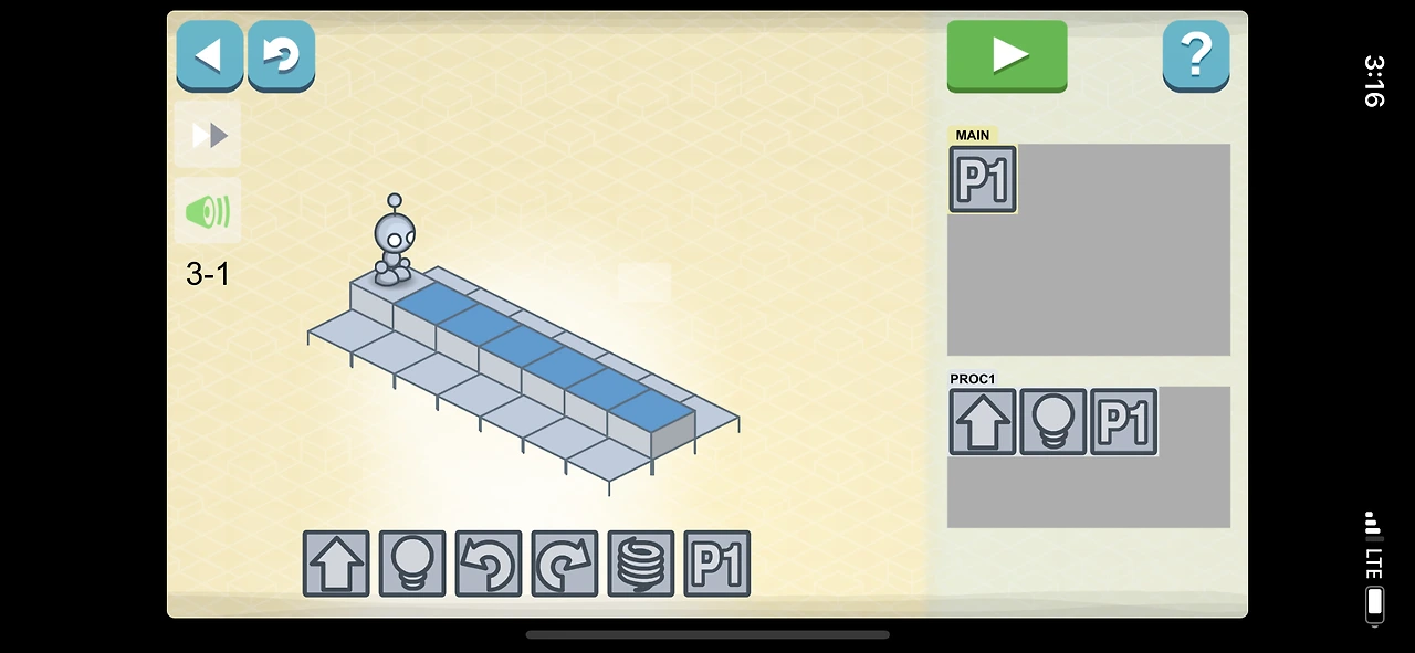 보통 게임처럼 보이지만, 프로그래밍 언어 공부 이전에 필요한 기본개념을 충실히 익힐 수 있게 설계되어 있다. 로봇이 전진하는 것은 화살표( ->)로, 불을 켜는 것은 전구 표시(@)로 바꾸며 인간의 언어를 기호화(추상화)하는 능력을 기를 수 있다. 또 반복되는 움직임을 p1으로 축약하여 표현하며, 표현을 효율화(자동화)하는 법도 연습하게 된다.