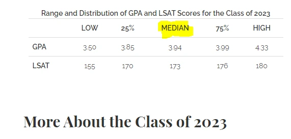 혹시 다른 나라에서도 평균을 이용해서 자신의 위치를 확인할까? 경험해 본 바에 의하면 꼭 그렇지는 않았다. (이직을 고민하며 지원했던) 미국의 모든 로스쿨에서는 전년도에 합격한 학생들의 LSAT(로스쿨 입학시험) 점수의 중간값(Median)을 알려주었다. 평균이 아니라 전체 합격자 중 딱 중간 점수로 합격을 한 사람의 점수는 얼마나 되는 지를 알려주어, 지원을 고민하는 학생들이 참고하도록 안내한 것이다.