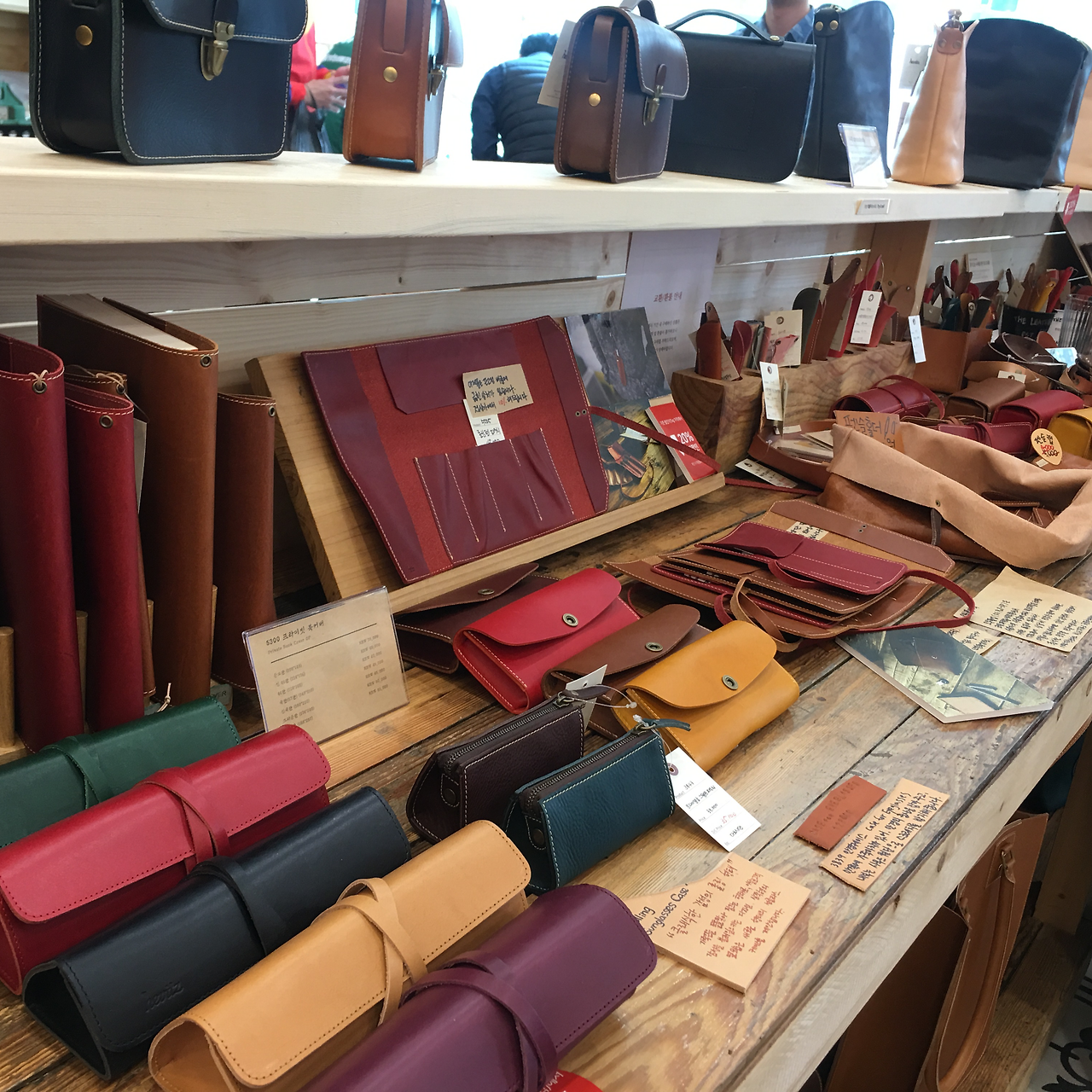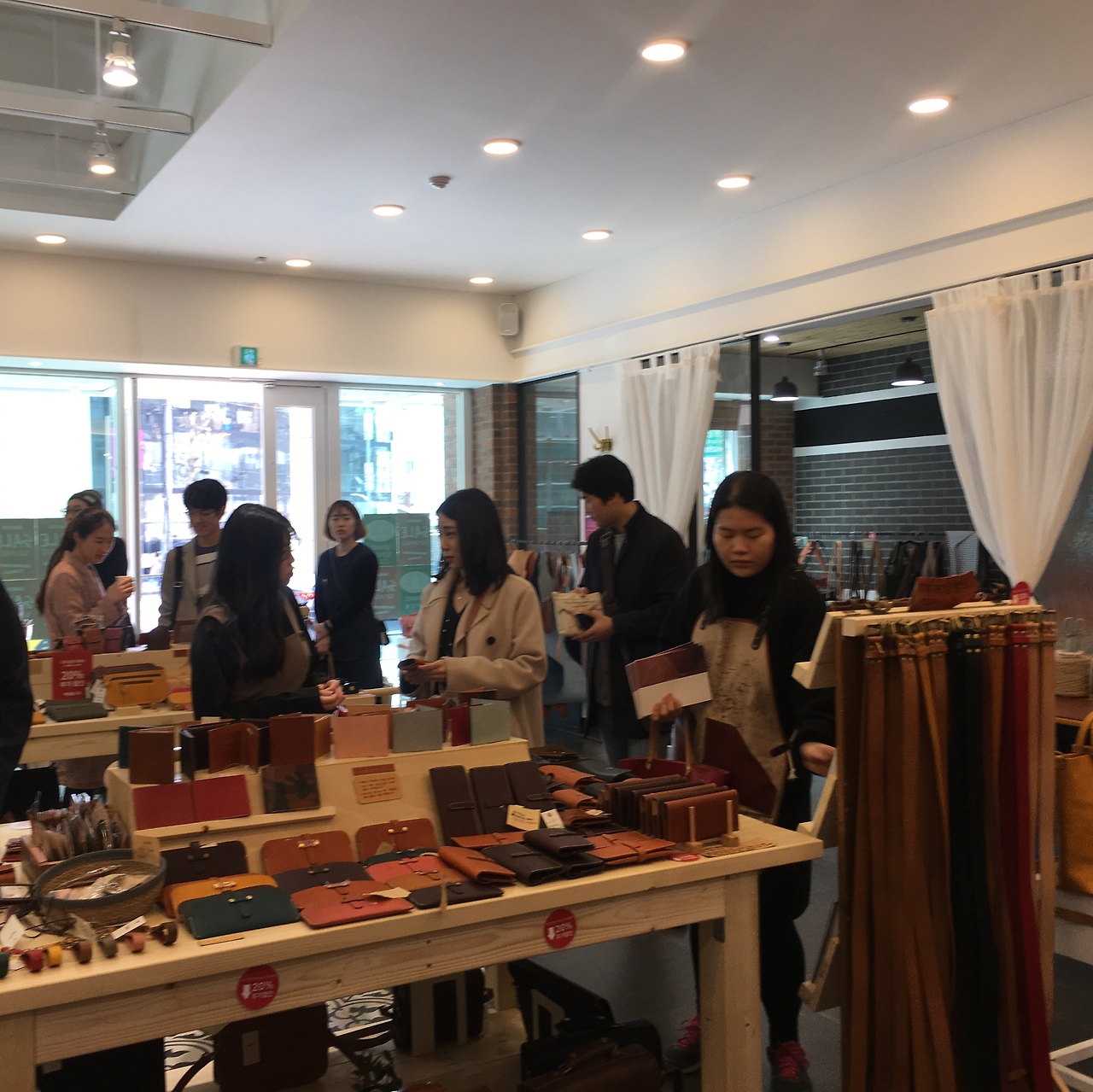 가죽제품들이 굉장히 많았고, 다양한 형태로 되어있었다. 사람들도 꽤나 바글바글했으며 마치 가죽 전시회에 온 듯 유심히 보는 사람들이 많았다. 그에 반해 나는 어떤 가죽이 좋은 가죽인지 일반 플라스틱 제품보다 가죽 제품이 뭐가 더 좋은지 전혀 모르는 사람이고 관심도 없는 사람이었다. 그렇기에 친구가 언제 나가자 할지 기다리며 어슬렁거리고만 있었다.