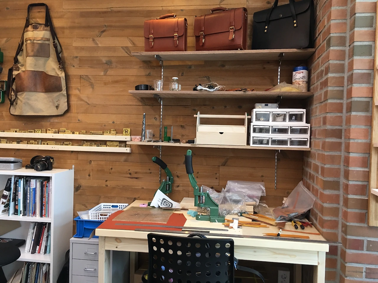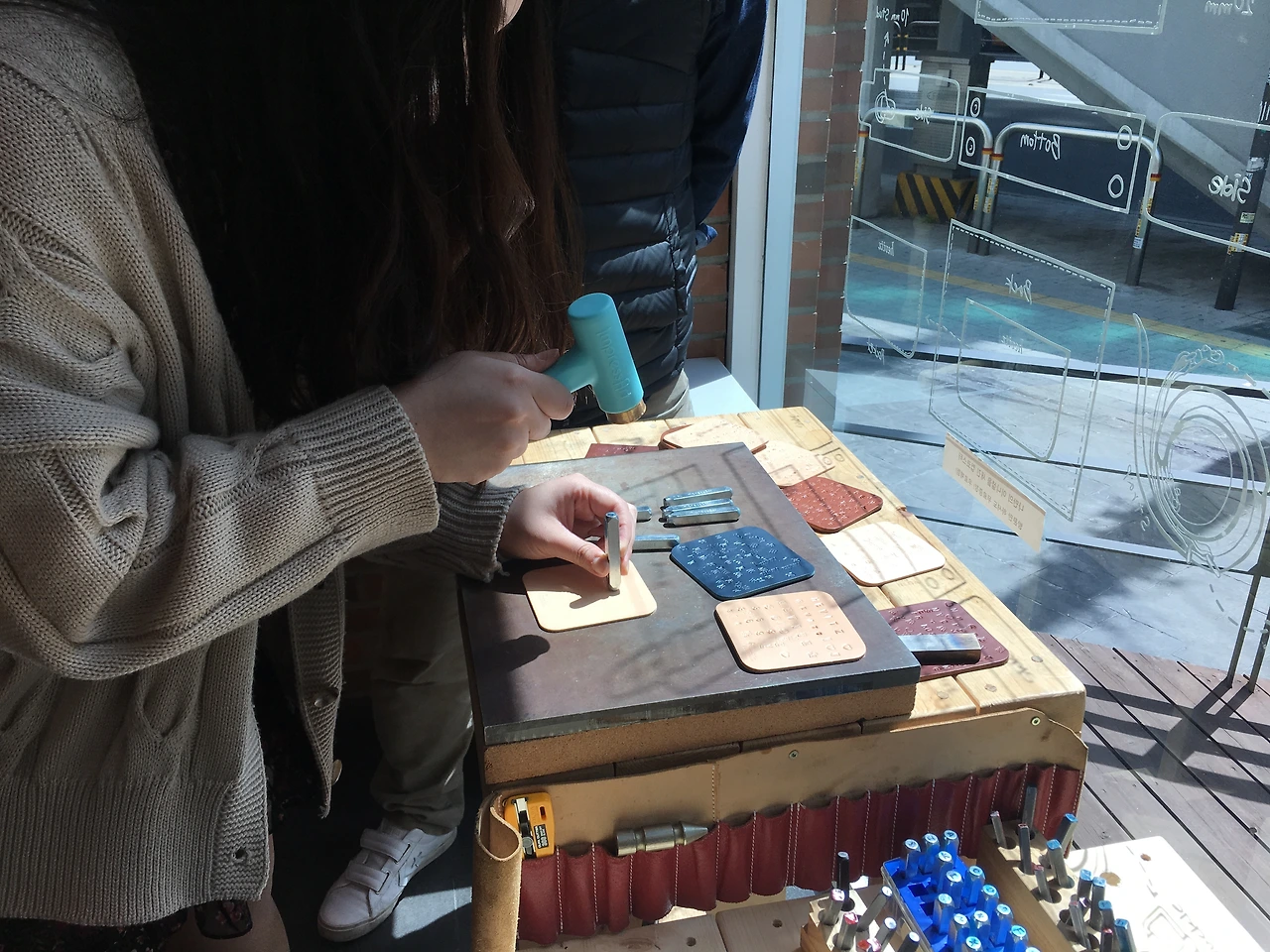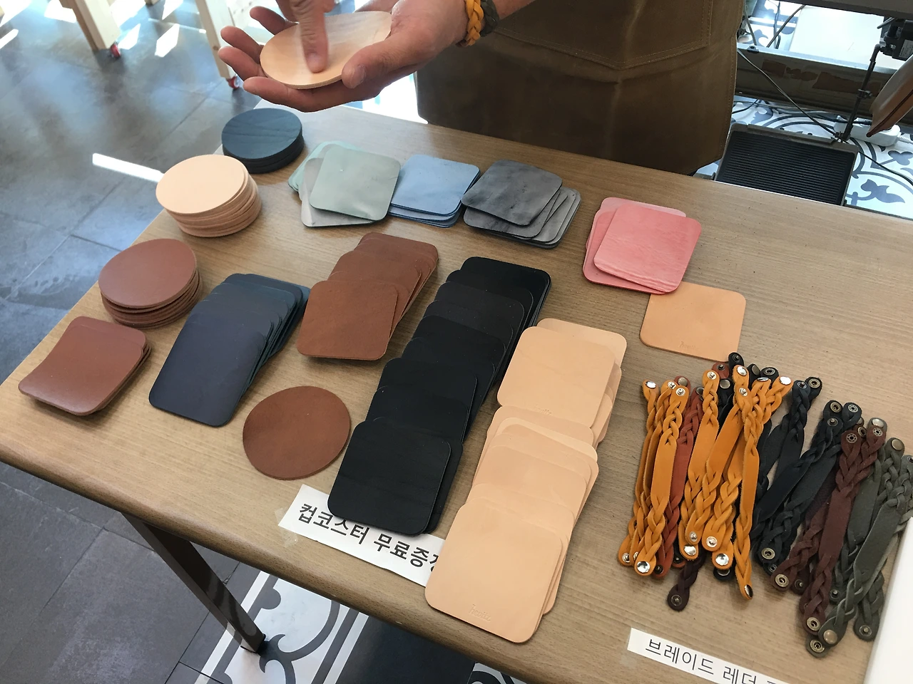 쓸데없는 생각이지만 만약 이 가게가 가죽에 관심이 있는 고객들 대상으로 프리미엄 회원제도를 만들어 이런 각인 제품을 대여해주거나 집에서 직접 취미로 가죽공예를 할 수 있는 가죽 키트를 함께 배달하여 제공해준다면 단순히 가죽을 판매하는 곳이 아닌 가사모(가죽을 사모하는 모임) 커뮤니티를 더 구성할 수 있겠다는 생각이 들었다.