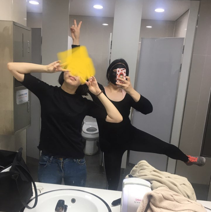 수업이 다 끝나고 해당 공간엔 화장실이 없어 옆 건물에 화장실에 가서 세수를 한 후 옷을 갈아입었다. 해당 화장실은 친구의 작은 아지트같았다. 다른 학생들은 모르는 그녀만의 아지트! 신설빌딩의 화장실이었기에 매우 깨끗했다. 마음도 편하게 팩을 하며 상기된 얼굴을 식혔다.