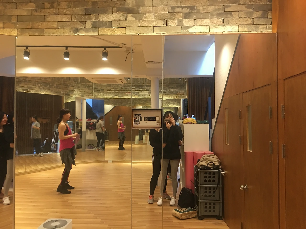 시작시간 3분전 도착하였다. 나의 친구를 포함하여 3명이 이미 와서 몸을 풀고 있었다. 이 공간은 여러 프로그램이 진행되는 공간같았다. 요가패드, 아령 등등 여러 물품들이 구비되어 있었다. 나는 이미 편한 운동복을 입고 장소에 갔었기에 실내 운동화만 신으면 끝나는 상황이었다. S양은 줌바에 자주와봤던 프로(?)로서 물티슈와 물을 준비해왔었다.