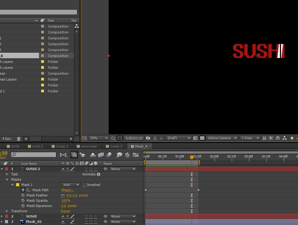 마스크하는 방법이 모션그래픽에서 정말 중요한 부분인듯하다 마스크하는 방법을 알면 이미지가 숨겨졌다 튀어나오는 것도 할 수 있고, 이미지가 옆으로 넘어가는 효과도 가능하다.