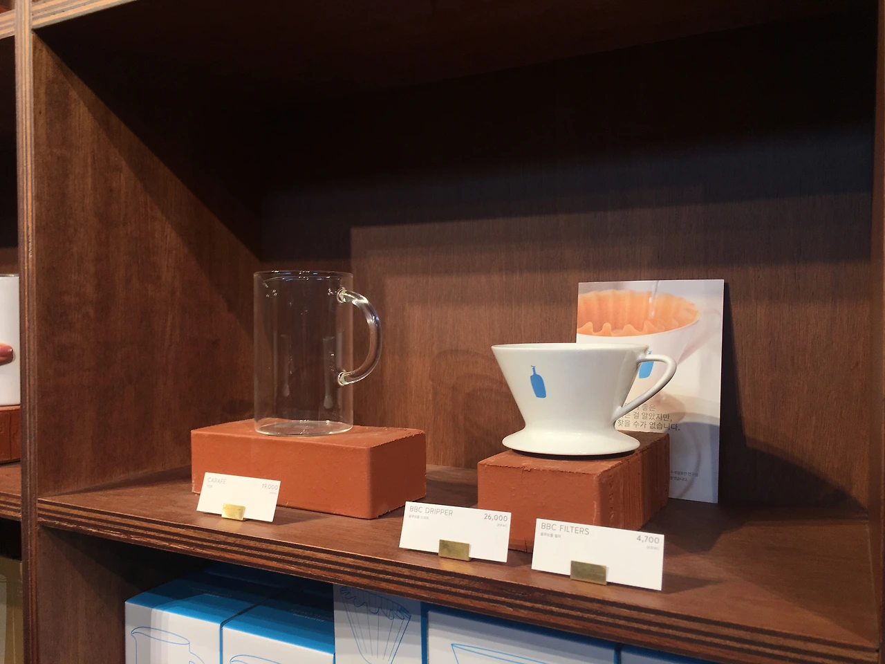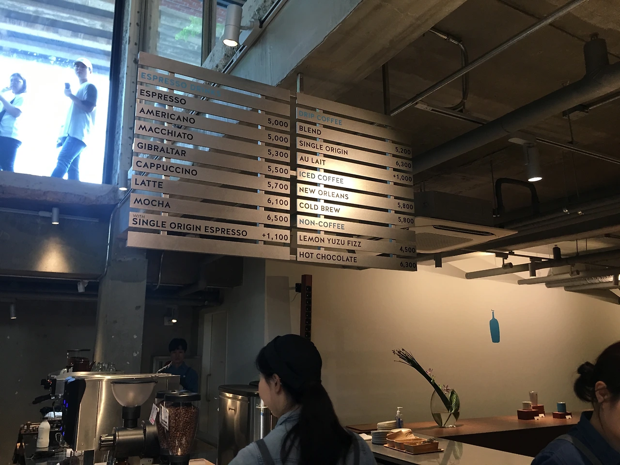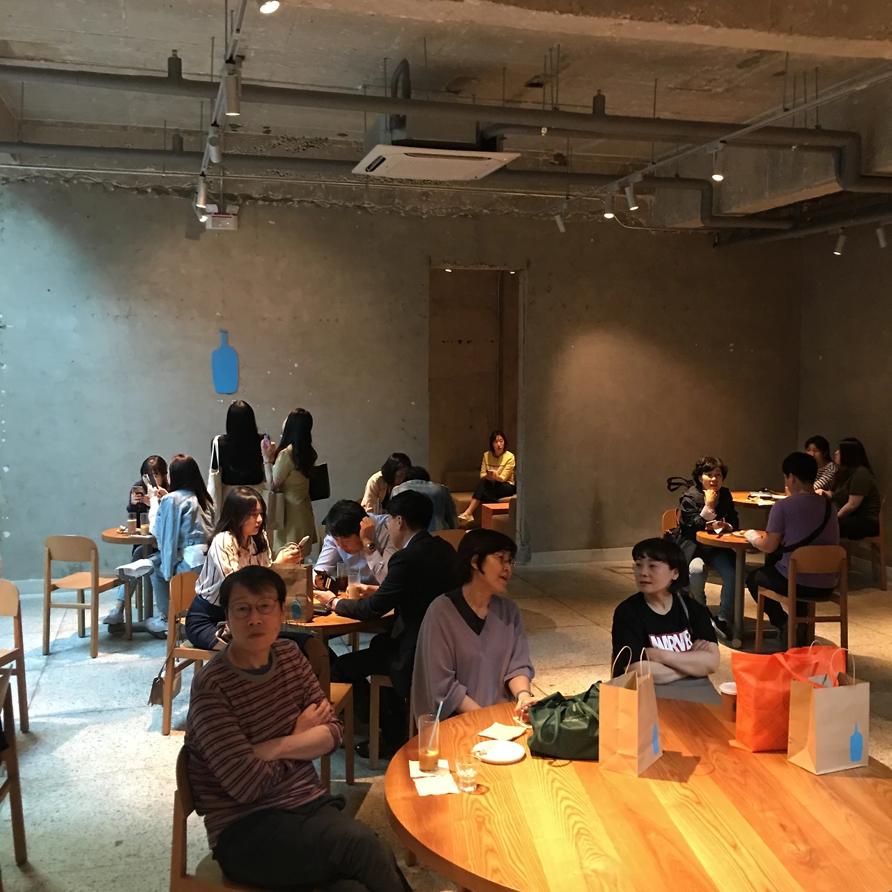듣던 대로 내부에 콘센트는 없었으며 오직 블루보틀 시그니처, 회색, 나무색 만 있을 뿐이다. 한국에 콘센트가 없는 카페는 많지 않은데 블루보틀의 가치관에는 맞지 않은 설정이라 의도적으로 뺀 듯해 보였다.