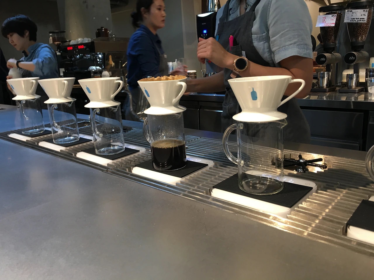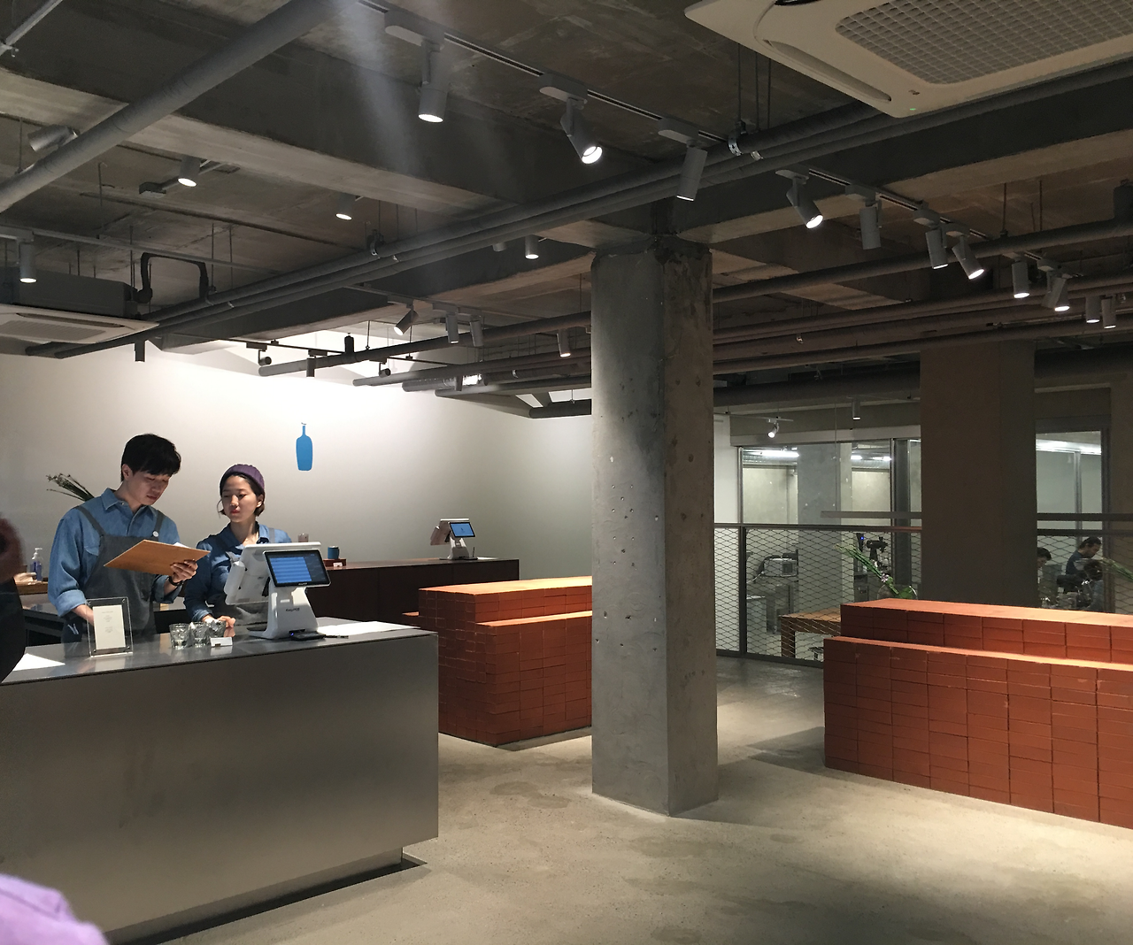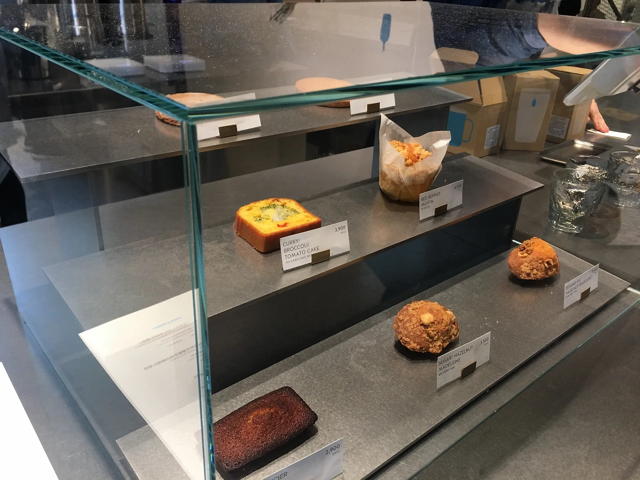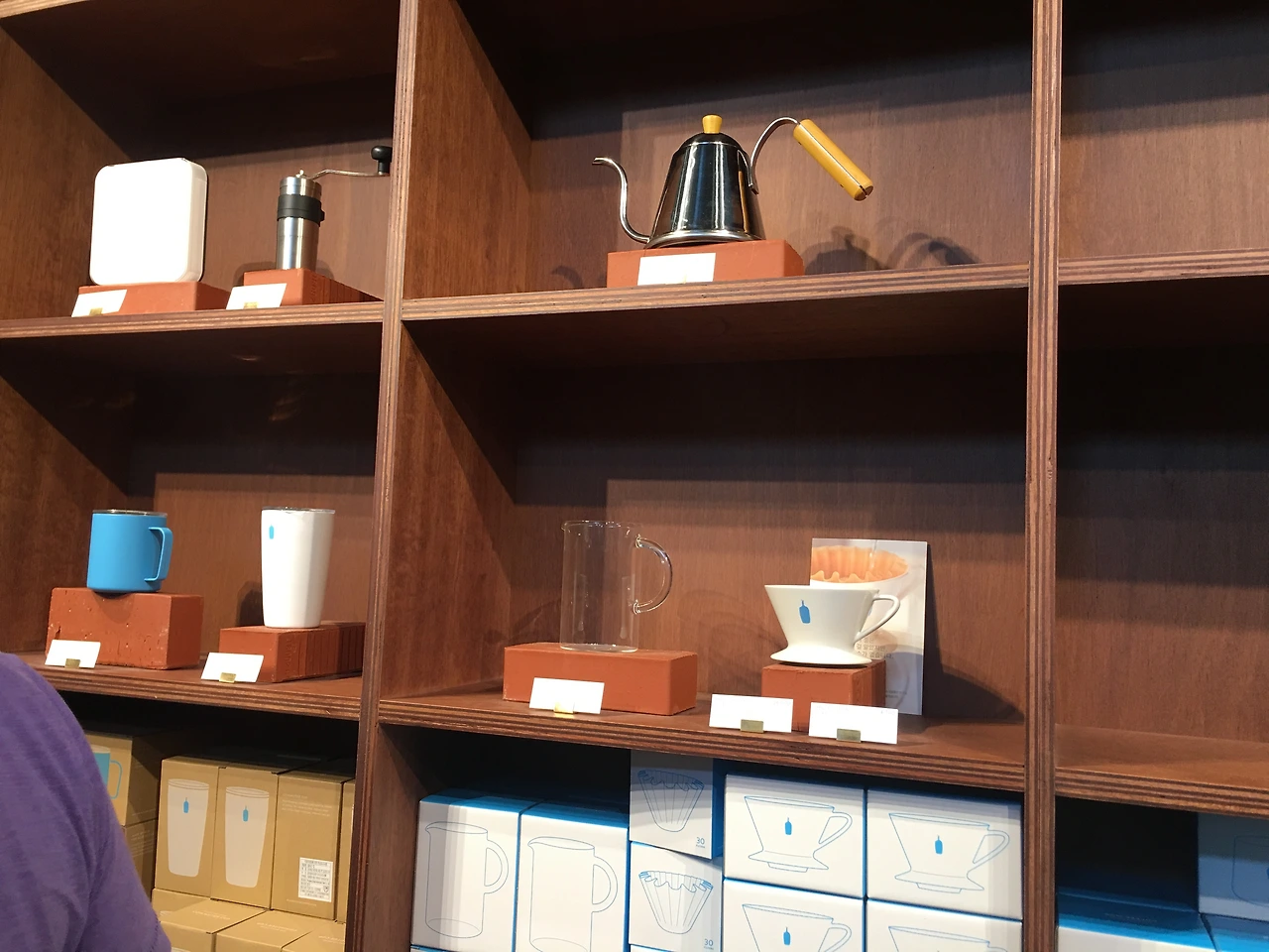 듣던 대로 내부에 콘센트는 없었으며 오직 블루보틀 시그니처, 회색, 나무색 만 있을 뿐이다. 한국에 콘센트가 없는 카페는 많지 않은데 블루보틀의 가치관에는 맞지 않은 설정이라 의도적으로 뺀 듯해 보였다.