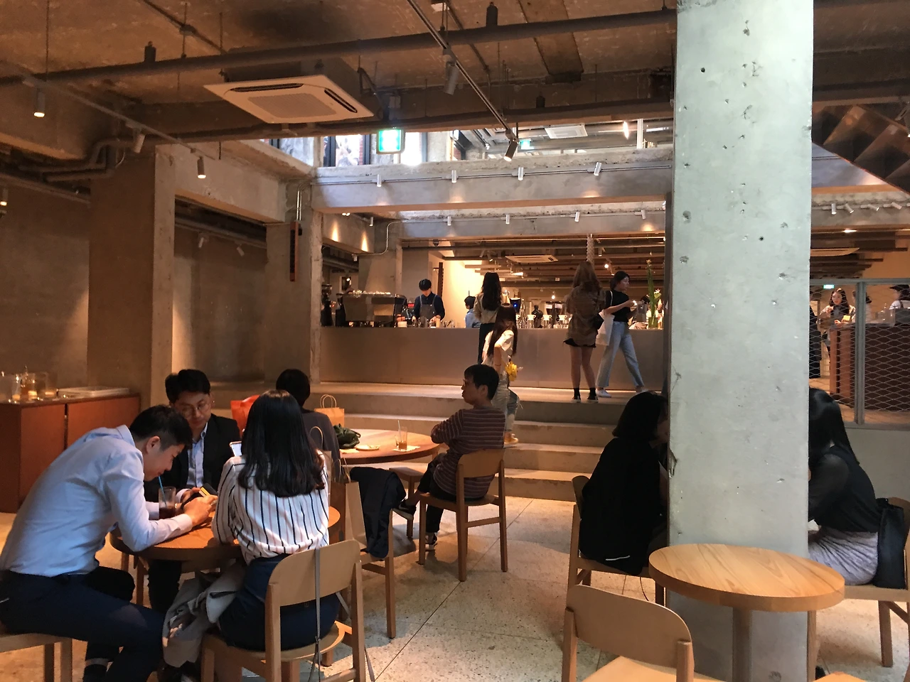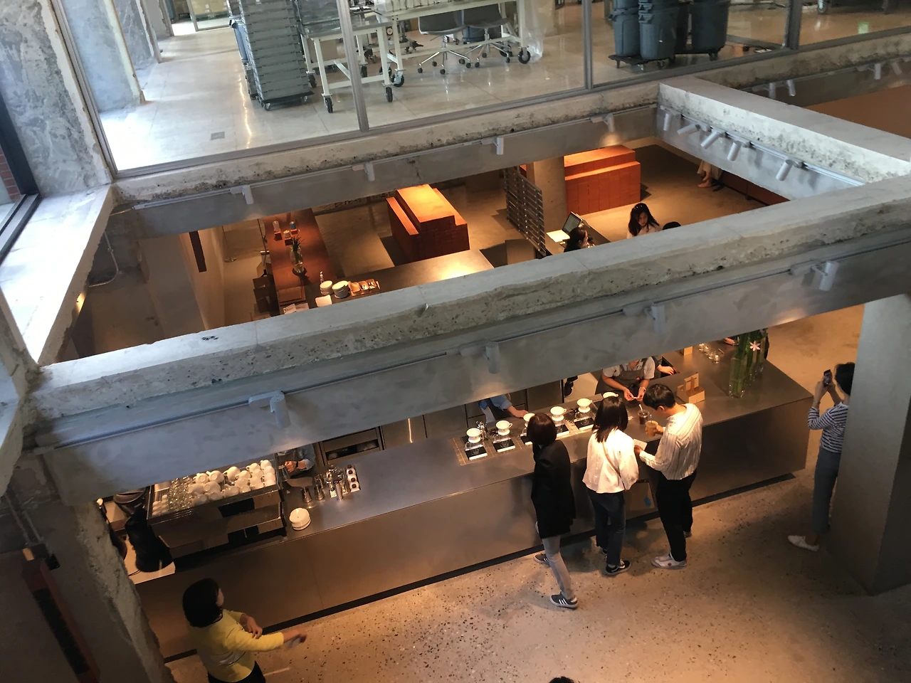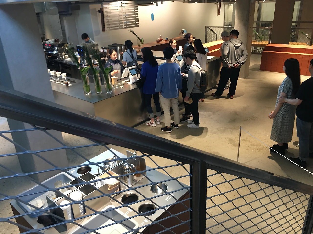 기다리면서 내려다본 풍경은 흡사 외국 느낌을 풍겼다. 그러나 1층 가게 내부에 기계들만 있는 공간을 보며 아니 이렇게 고객들을 기다리게 할 바에야 저 공간도 커피 판매대로 만들지 왜 이렇게 고통스럽게 하지라는 생각이 들었지만 백종원 님이 예전에 말씀하신 ‘맛집이 공간 확장을 하려고 한다면 확장은 하되 테이블 개수는 천천히 늘려라’라는 말이 떠오르면서 아 얘네도 뭔가 마케팅 전략이겠구나 라는 생각이 들었다.