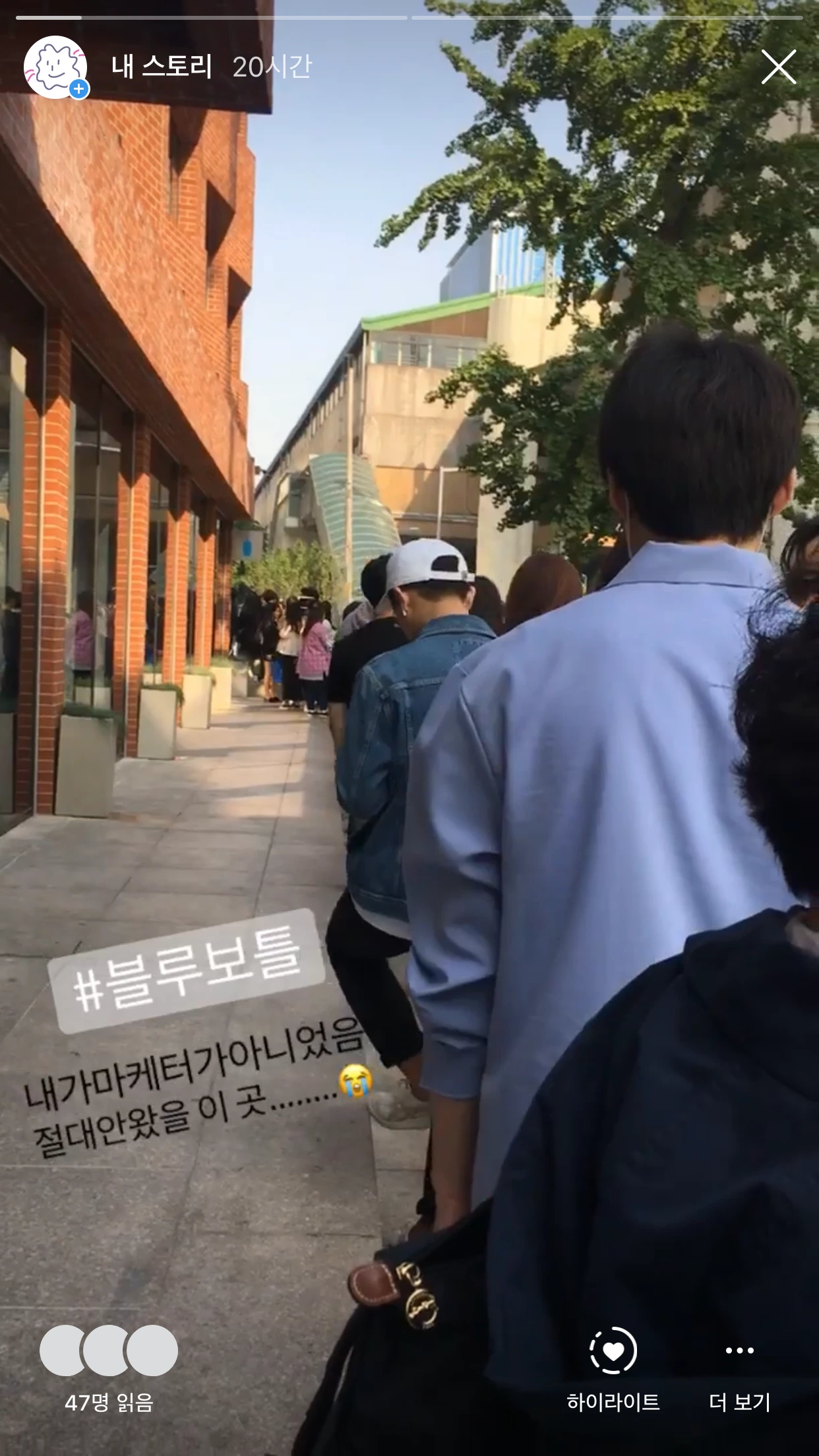 보통 인증샷이라고 하면 배경과 나만 나와야 ‘잘’ 나온 사진이다. 네이버 검색 혹은 SNS에서도 ‘사람 많은 곳에서 사진 잘 찍는 방법’과 같이 사람들이 안 나오는 방법을 연구해서 찍는다. 그런데 블루보틀에선 달랐다. 여기선 일부로 기다리는 사람들도 뒷배경으로 찍는다. 그것 자체가 자신의 승리를 보여주기 때문이다.