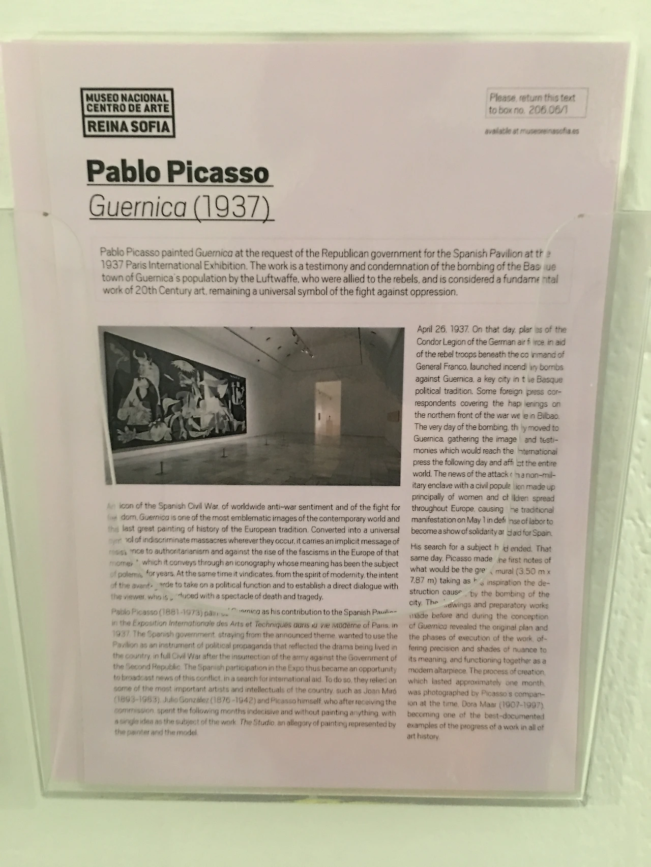 소피아 미술관에는 현대미술 작품들이 주로 전시되어 있다. 20, 21세기 그림들을 많이 볼 수 있어 좋았다. 소피아미술관에서는 오디오 가이드를 듣지 않아서 사실 각 그림에 대한 자세한 이해가 부족했다. 다음 마드리드에 방문할 때는 꼭 프라도 미술관을 들리고, 그 다음 소피아 미술관을 방문해야겠다는 생각이 들었다.