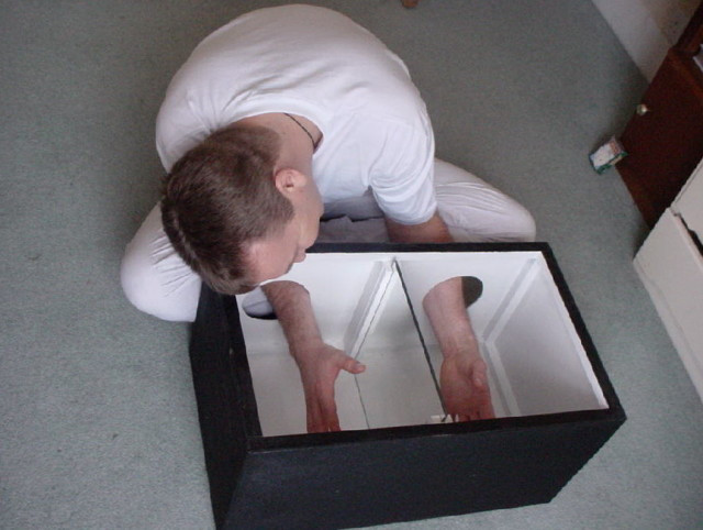 과정은 이렇다. 왼팔을 잃은 환자의 정상적인 오른팔이 들어갈 수 있는 큰 통을 만든다. 오른팔이 들어가는 통 안에는 전면 거울을 설치한다. 그러면 환자는 거울을 통해, 마치 왼팔이 있는 것처럼 보게 된다. 그러고 나서 환자의 오른팔을 긁어주면, 비록 거울에 비친 가상의 이미지이지만 환자는 왼팔의 가려움이 해소되는 것을 경험한다. 라마찬드란은 이를 '거울 시상 효과'라고 불렀다.
