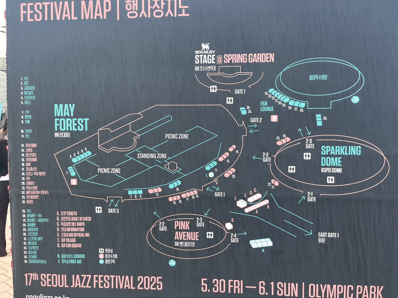 오늘 2025 서울 재즈 페스티벌(약칭_서재페)에 다녀왔다. 5.30(금)~6/1(일)까지 3일 진행되는데 3일권 가격이 무려46만원이라 부담스럽기도 하고, 일전에 다녀온 서울 숲 재즈 페스티벌 2일도 꽤 에너지를 많이 썼던지라, 이번은 하루만 가기로 마음을 정했다.