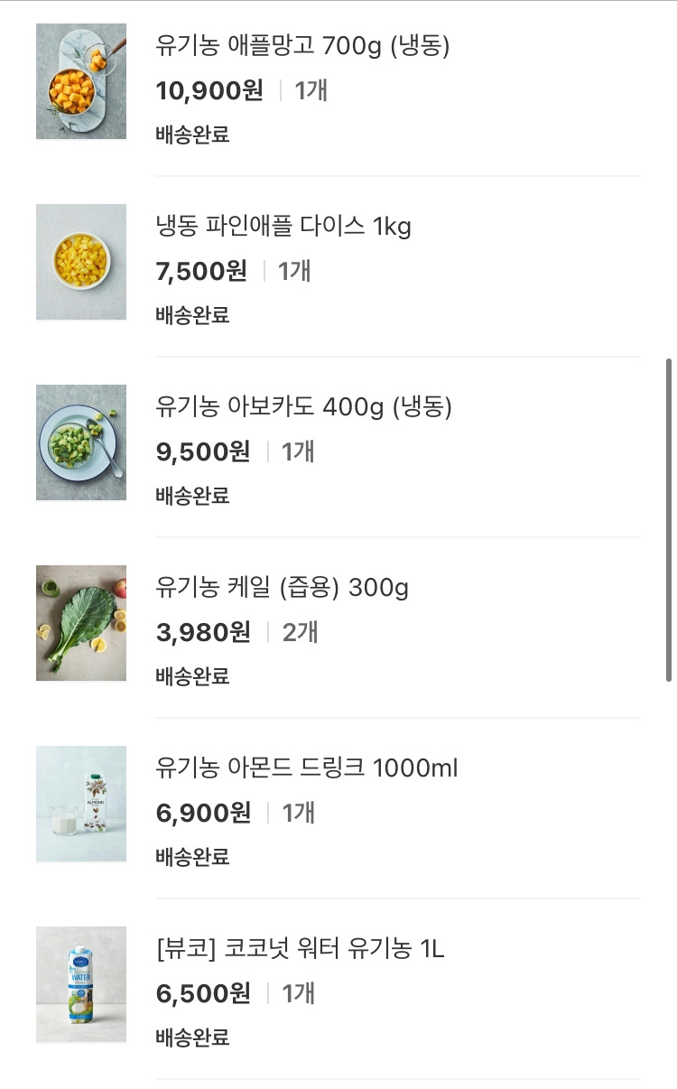 구매 목록은 아래와 같고, 비용은 약 87,000원 정도 들었다. 비싼 브랜드들의 해독주스를 사먹어도 되는 가격이라 돈을 아끼기 위한거라면 직접 조리하는 방법은 권하지 않는다.