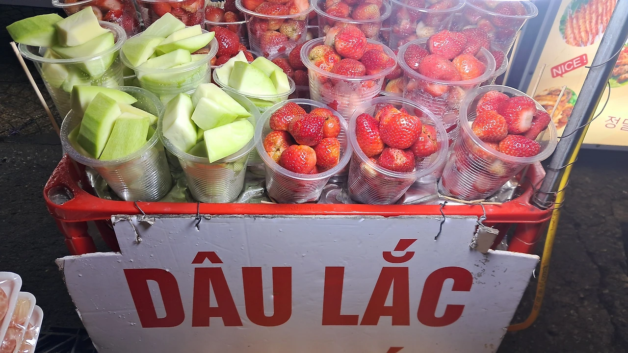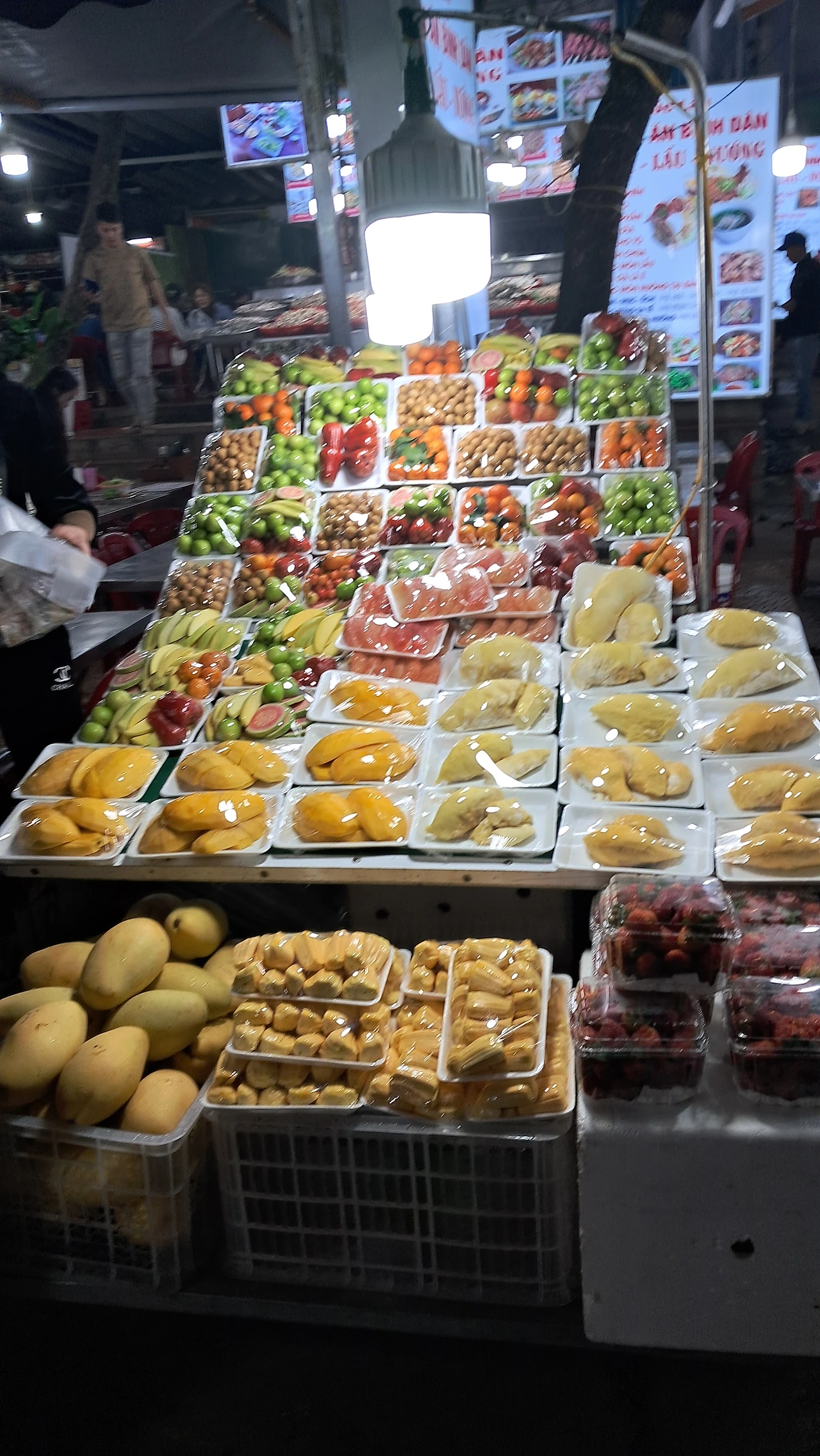 오늘은 달랏의 야시장에 갔다. 눈에 들어온 과일을 사진으로 담아보았다. 즉석에서 썰어주는 망고를 딸이 사달라고 해서 가격조사를 해보았다. 앞쪽에 자리 잡은 상인들은 1kg에 5만 동(2,900원)을 달라고 했고, 후미진 뒤쪽에 자리 잡은 상인은 4만 동(한화 2,300원)을 불렀다.