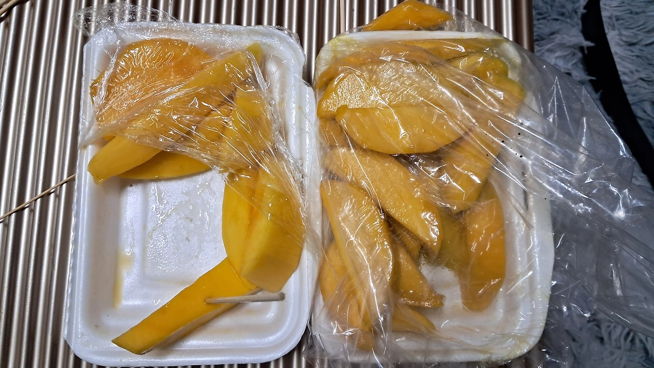 더 뒤쪽으로 가면 베트남 망고 1kg의 적정가인 3만 동(한화 1,700원)을 부른다는 얘기를 들었다. 중학생 아들이 뒤로 더 가봐야 600원 차이이니 그냥 사자는 말에 호기심을 접고 망고 1kg에 4만 동, 한화 2,300원에 구입했다. 망고 1kg은 큰 망고 약 두 개, 두 팩 정도의 분량이다.