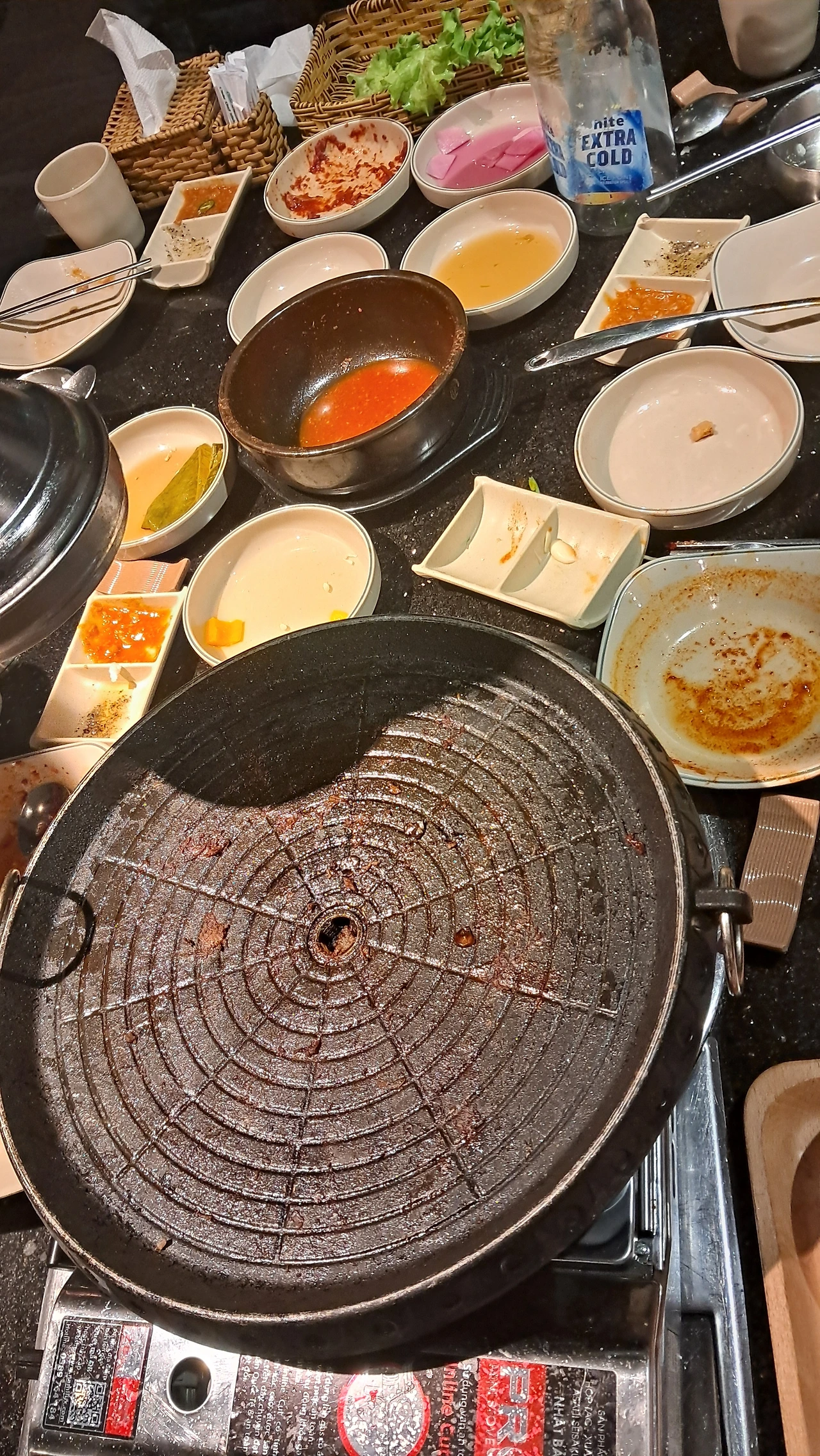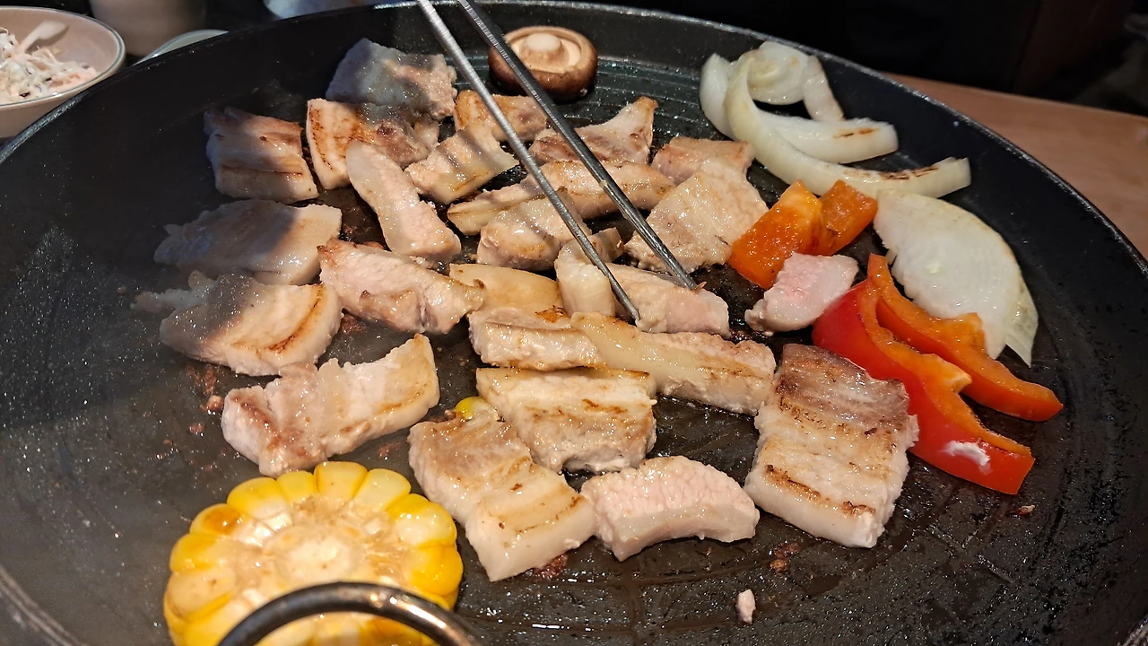 모둠 돼지고기는 삼겹살&항정살&목살이 합쳐진 조합이었다. 공기밥은 4개가 기본으로 나왔다. 남편이 공기밥 한 그릇을 추가로 시켰는데 밥이 무제한 무료라고 했다. 정서상 더 추가는 못 시켰다. 값을 받았다면 추가시켰을 것이다.