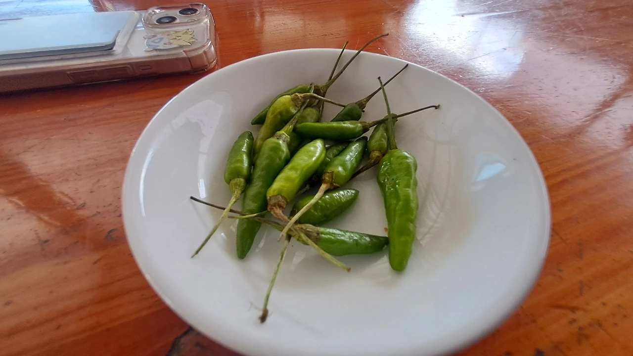 애들이 군만두처럼 매 끼니때마다 시킨다. 모든 테이블에 놓여있는 고추.