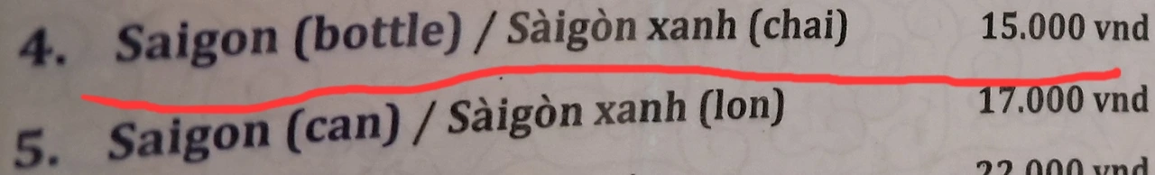 신기한 게 병맥주가 캔맥주보다 싸다. 캔맥주는 17000동(980원)