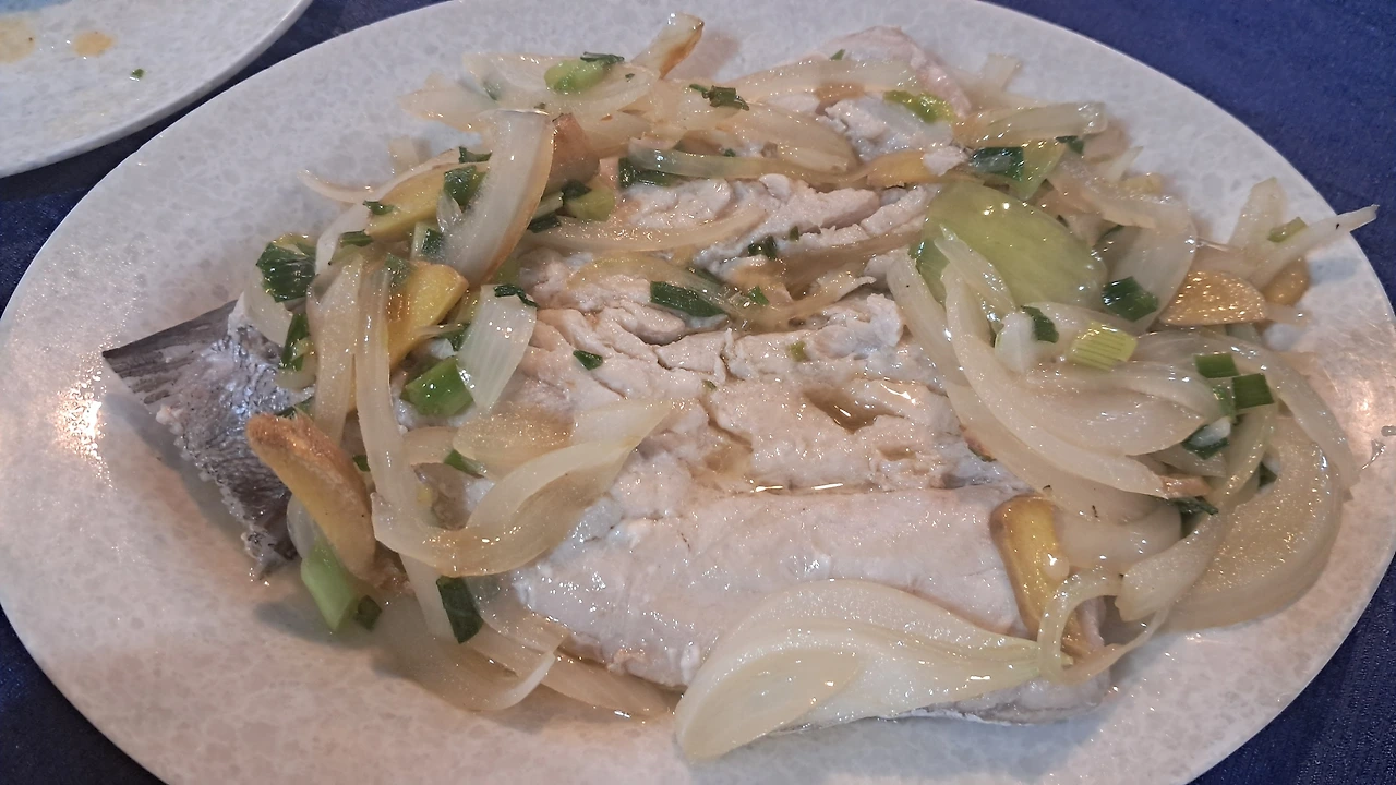 (Steamed sea fish with gingers and onion) (Ca hap hanh gung)